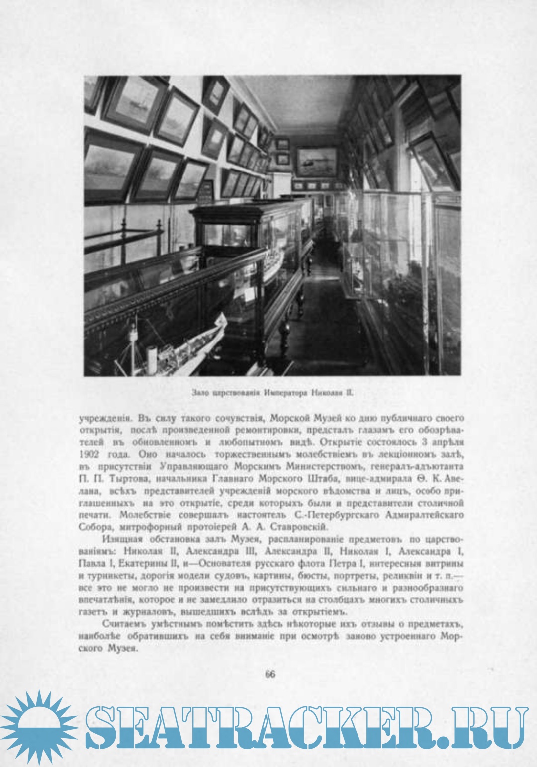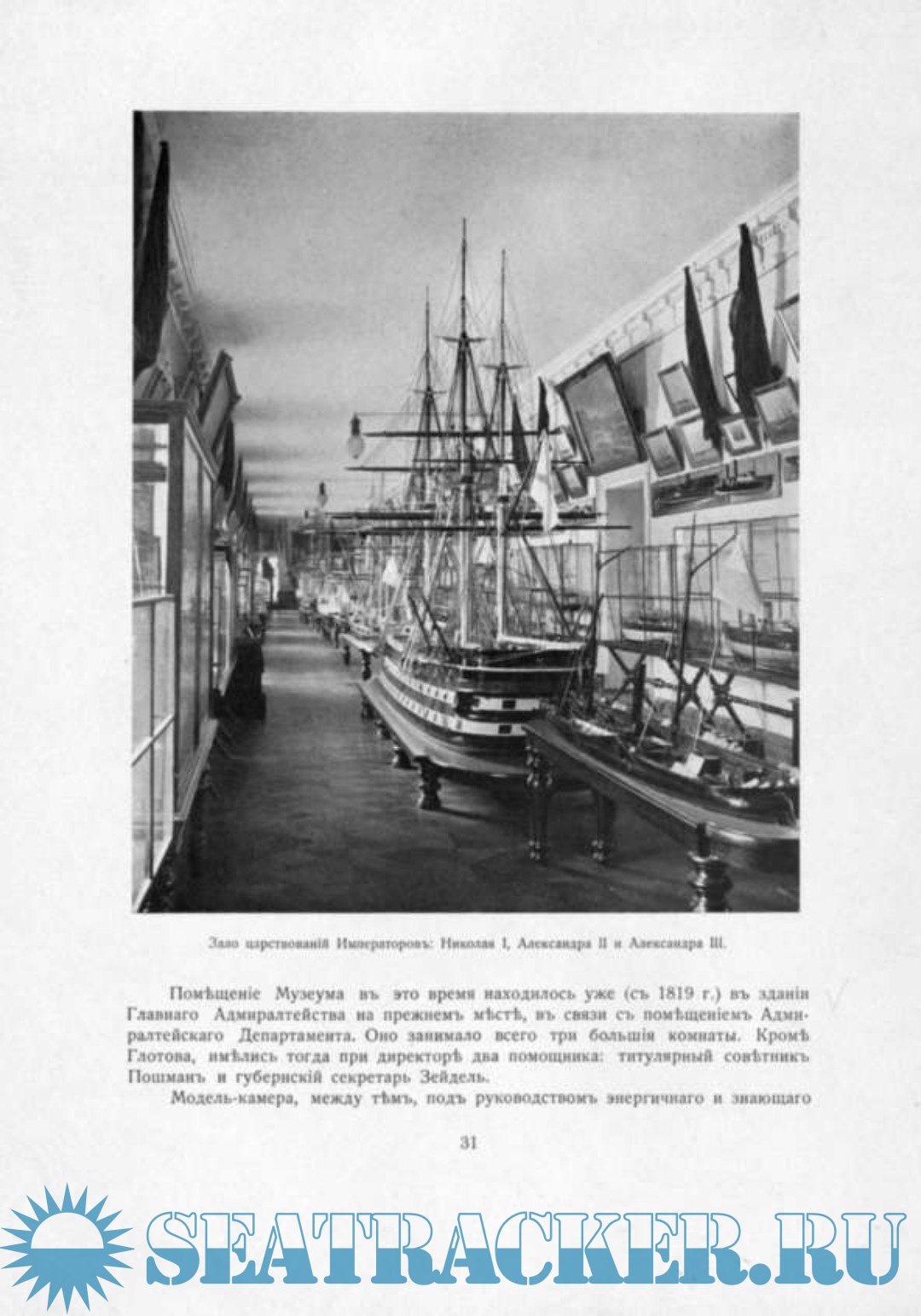 Описание: В числе различных, по своим специальностям, , музеев, находящмхсы в С.-Петербурге, имеется в здании Главного Адмиралтейсива Морской Музей, в котором историческая часть русского флота не только занимает почётное местол, с моделью знаменитого "Дедушки", но где в моделях и образцах с математической точностью, изображаются и существующие типы судов, их боевое вооружение и снабжение в хозяйственном отношении.