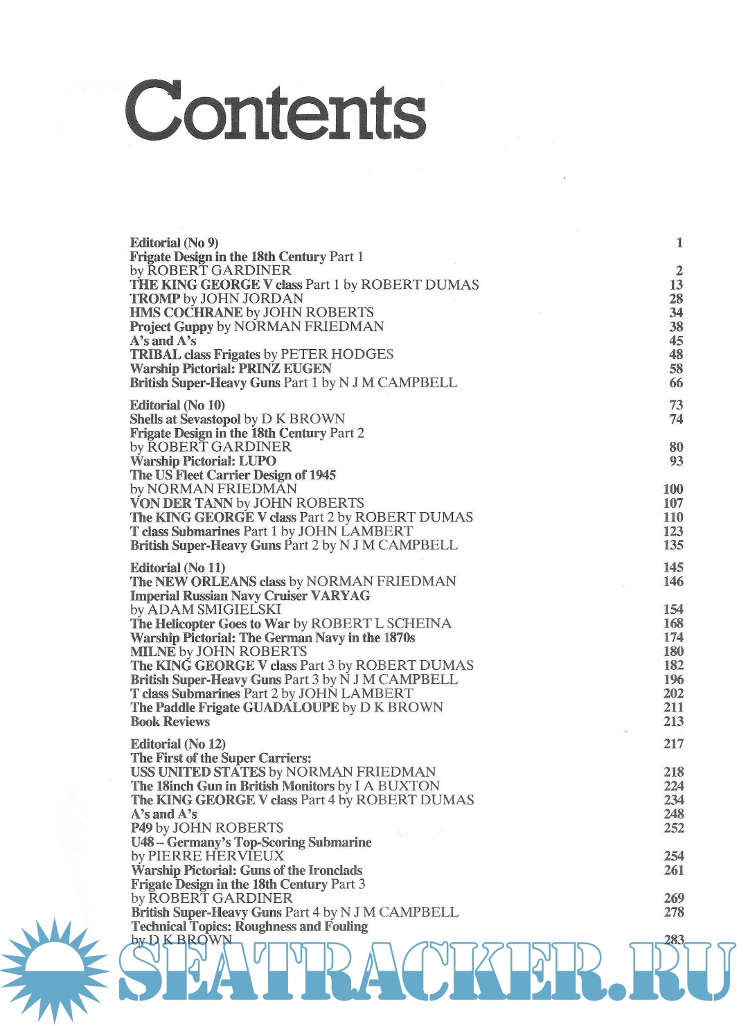 Year: 1979 Language: English Author: Roberts J. Genre: Periodical publication Publisher: Conway Maritime Press Format: PDF Quality: eBook Pages count: 294 Description: Issue No 9 Frigate Design in the 18th Century, by Robert Gardiner The King George V Class, by Robert Dumas (part 1 of 4) Tromp, by John Jordan HMS Cochrane, by John Roberts Project GUPPY, by Norman Friedman A's and A's Tribal Class Frigates, by Peter Hodges Warship Pictorial: Prinz Eugen British Super-Heavy Guns, by N J M Campbell Issue No 10 Shells at Sevastopol, by David K Brown Frigate Design in the 18th Century, by Robert Gardiner Warship Pictorial: Lupo The US Fleet Carrier Design of 1945, by Norman Friedman Von der Tann, by John Roberts The King George V Class, by Robert Dumas (part 2 of 4) "T" Class Submarines, by John Lambert British Super-Heavy Guns, by N J M Campbell Issue No 11 The New Orleans Class, by Norman Friedman Imperial Russian Navy Cruiser Varyag, by Adam Smigielski The Helicopter Goes to War, by Robert L Scheina Warship Pictorial: The German Navy of the 1870's Milne, by John Roberts The King George V Class, by Robert Dumas (part 3 of 4) British Super-Heavy Guns, by N J M Campbell "T" Class Submarines, by John Lambert The Paddle Frigate Guadalupe, by David K Brown Issue No 12 The First of the Super-Carriers: USS United States, by Norman Friedman The 18inch Gun in British Monitors, by I A Buxton The King George V Class, by Robert Dumas (part 4 of 4) A's and A's P49, by John Roberts U48: Germany's Top-Scoring Submarine, by Pierre Hervieux Warship Pictorial: Guns of the Ironclads Frigate Design in the 18th Century, by Robert Gardiner British Super-Heavy Guns, by N J M Campbell Technical Topics: Roughness and Fouling, by David K Brown