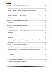 The core of this Manual is formed by a number of uniquely numbered checklists to make sure the shipmaster does not forget anything. Furthermore, a number of important subjects are discussed, such as the use of force, notifications and reports, fines, etc.