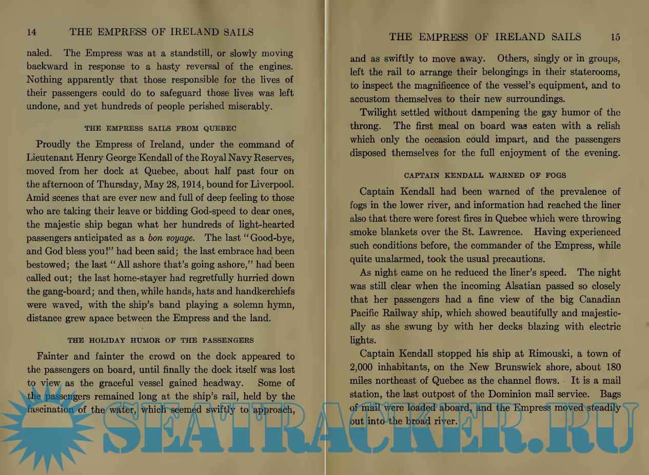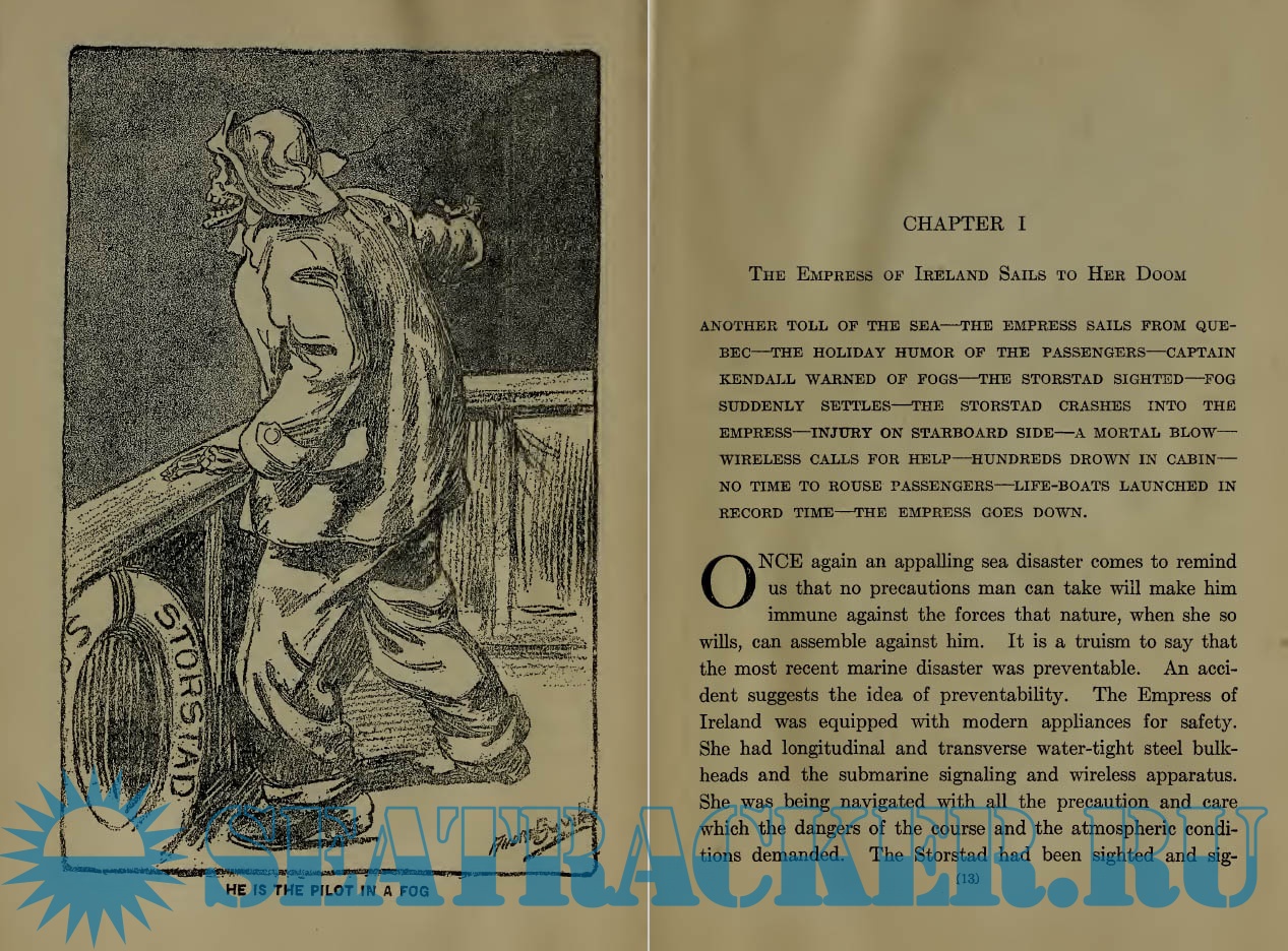 Year: 1914 Language: English Author: Marshall, Logan Genre: Historical Format: PDF Quality: Scanned pages Pages count: 358 Description: "The Tragic Story of the Empress of Ireland" by Logan Marshall is a historical account written in the early 20th century. The book documents the catastrophic sinking of the Canadian liner Empress of Ireland in 1914, one of the deadliest maritime disasters in Canadian history. Through survivors' accounts and various testimonies, it explores the circumstances that led to the disaster, including navigational errors and fog conditions that contributed to the tragedy. The opening of the narrative describes the ill-fated voyage of the Empress of Ireland as it embarks from Quebec filled with eager passengers. As the ship encounters fog on the night of May 29, 1914, the crew, led by Captain Henry George Kendall, attempts to navigate safely. Unfortunately, disaster strikes when the Empress collides with the Norwegian collier Storstad, leading to panic and chaos on board as the ship begins to sink within minutes. Survivors’ harrowing experiences unfold amidst desperate attempts to reach lifeboats and escape the icy waters, setting up an emotional exploration of human courage and loss that continues throughout the book.