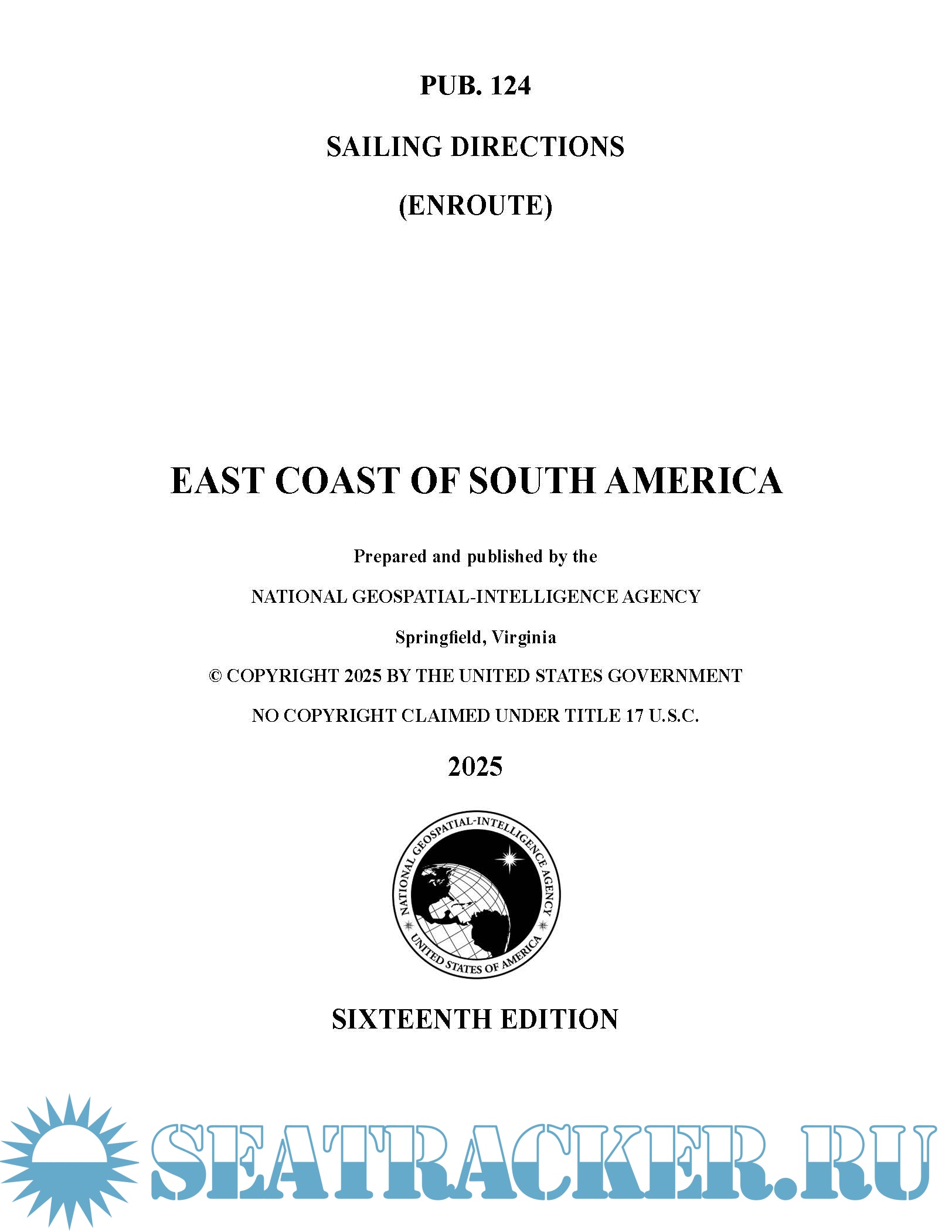 Year: 2025 Language: English Author: National Geospatial Intelligence Agency Genre: Documentation Edition: 16th Format: PDF Quality: eBook Pages count: 371 Description: Pub. 124, Sailing Directions (Enroute) East Coast of South America, Sixteenth Edition, 2025, is issued for use in conjunction with Pub. 160, Sailing Directions (Planning Guide)South Atlantic Ocean and Indian Ocean. The companion volume is Pub. 124. Digital Nautical Charts 1, 7, and 14 provide electronic chart coverage for the area covered by this publication. NGA Electronic Nautical Charts Regions H, J, and Q provide electronic chart coverage for the area covered by this publication. This publication has been corrected to 13 February 2025.
