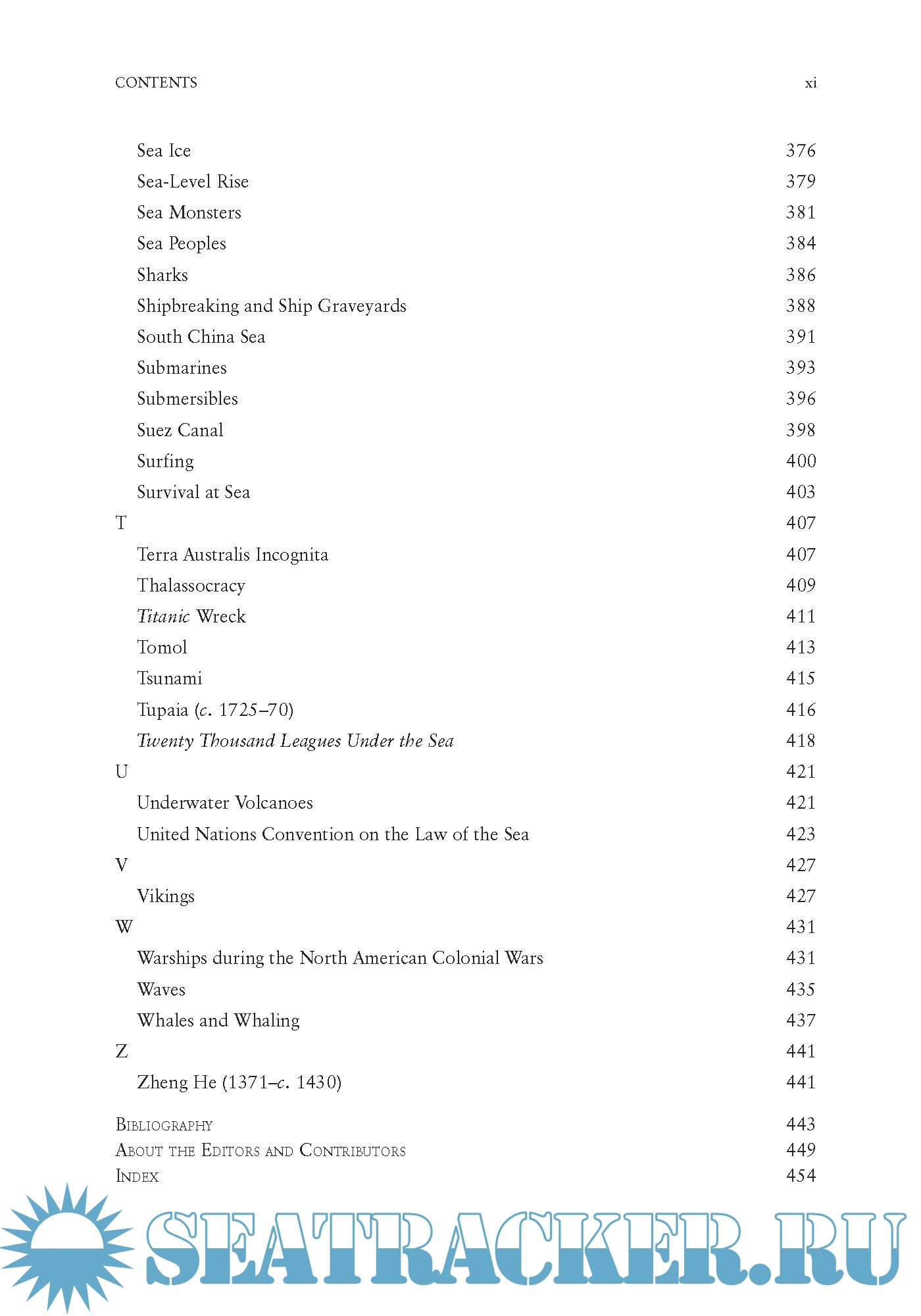 The second edition of this award-winning encyclopedia has been updated throughout and includes more than 20 additional entries and highlights timely concerns, including overfishing and microplastics, while also providing expanded coverage of the role oceans play in modern society, from cruise ships to the America's Cup competition. Part I of the book features a collection of 10 thematic essays, covering the five oceans of the world and broad areas of study such as the shipping industry and the changing nature of ocean boundaries. Part II includes more than 115 encyclopedia entries exploring topics ranging from the Bermuda Triangle to maritime law, from tsunamis to ocean acidification. Sidebars throughout offer fascinating facts that complement the main text.