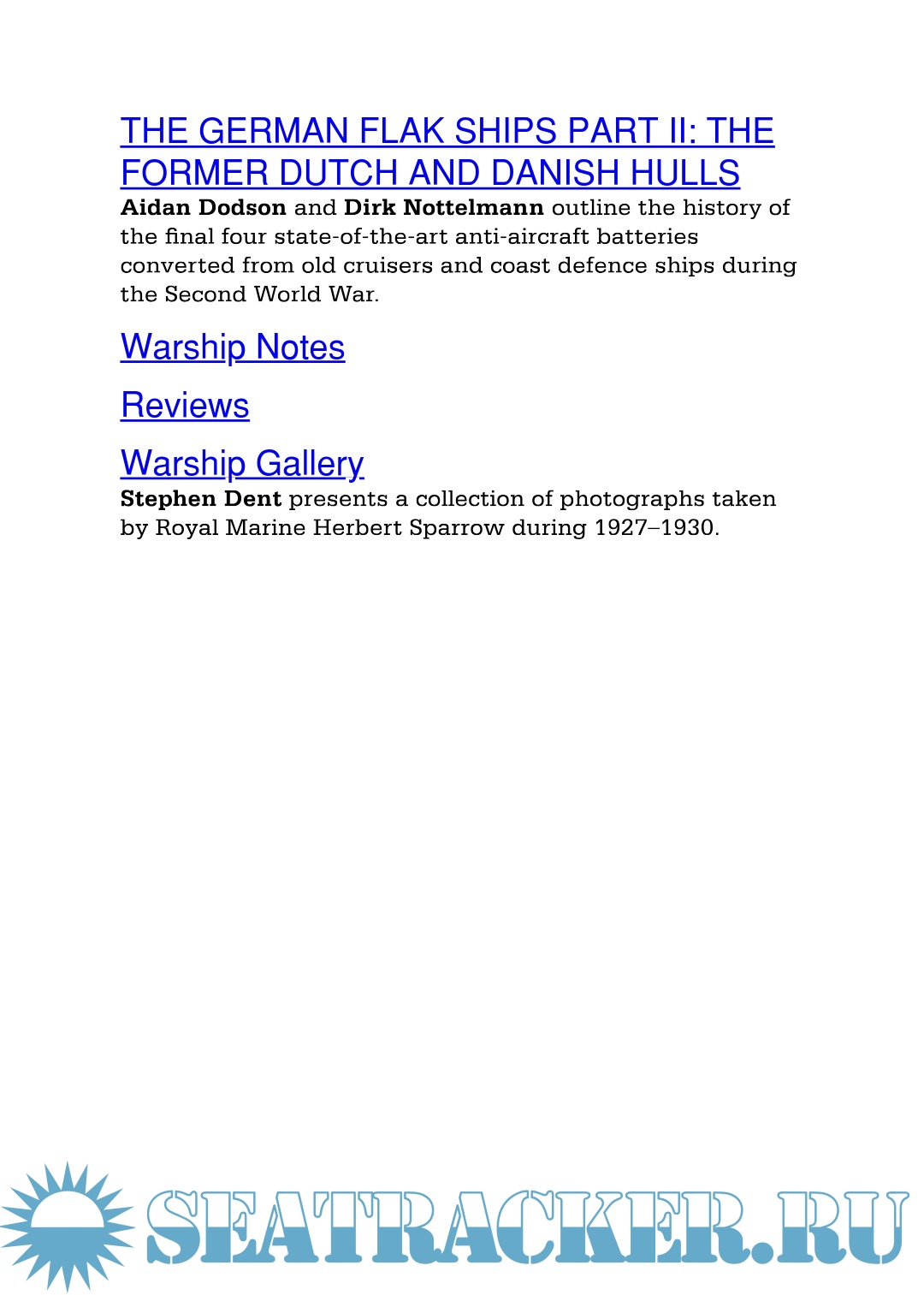The Royal Navy in China and the Middle East, 1927–30; the photographs of Royal Marine Herbert Sparrow (introduced and captioned by Stephen Dent).