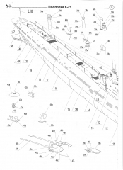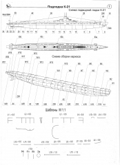 Описание: 22 листа цветных выкроек и инструкций для изготовления бумажной модели подводной лодки K-21 год в масштабе 1:100