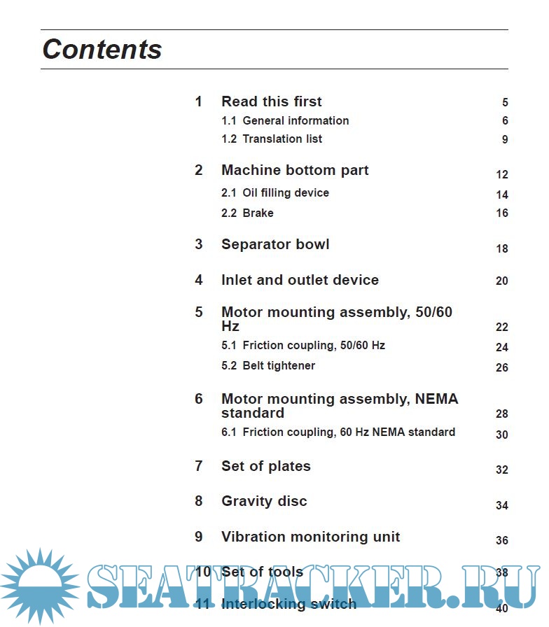 - Separator basis - Service instruction - Disassembly - Operating - Spare parts code
