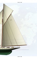 Description: ‘Ingomar’ was one of the first of the nine great Herreshoff (NGH) steel-hulled schooner yachts. She was designed and built the same year as ‘Reliance’ in 1903. Before ‘Ingomar’ all the big Herreshoff sailing yachts had been single-stickers, consisting mostly of the America’s Cup boats.