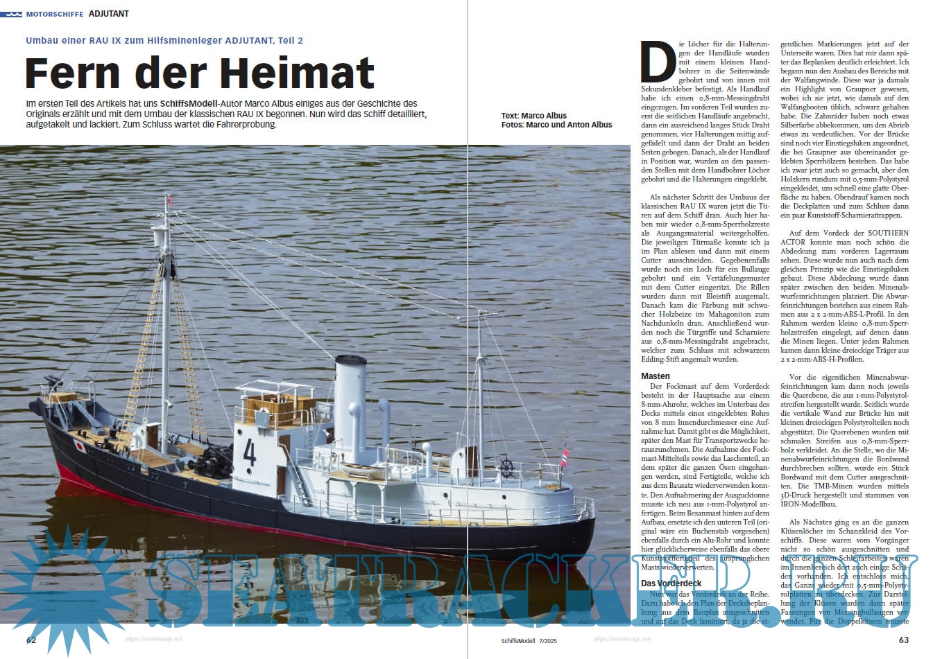Year: 2025 Language: German Author: Mario Bicher (Redaktor) Genre: Periodical publication Edition: 2025-07 Format: PDF Quality: eBook Pages count: 76 Description: SchiffsModell is the magazine for those who enjoy radio controlled and fully functional Modellnachbauten of ships of all kinds.