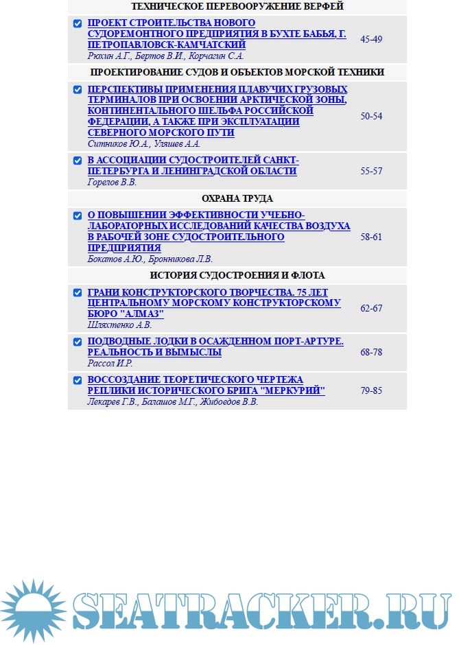 Описание: В журнале публикуются статьи ученых и специалистов на темы, связанные с проектированием, постройкой, ремонтом, модернизацией и утилизацией военных кораблей, гражданских судов. Регулярно выходят в свет работы, посвященные организации и технологии судостроительного производства, проектированию верфей и доков, новым судостроительным материалам. Большое внимание уделяется вопросам судовой энергетики и новым разработкам в области морской техники.
