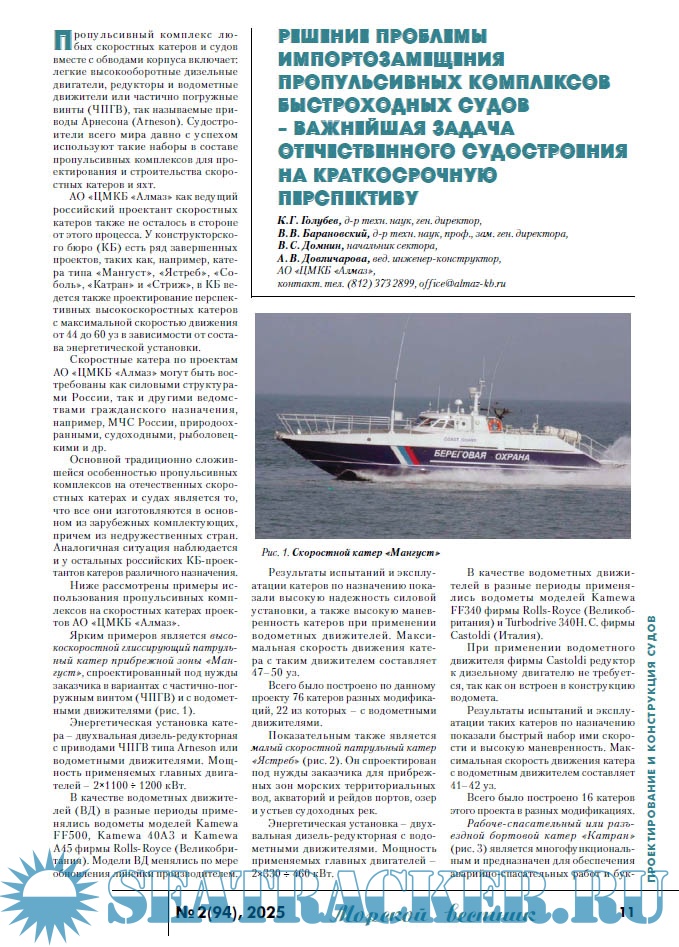 Описание: Информационные, аналитические, научно-технические и исторические статьи по морской технике и технологиям, экологической безопасности судостроения и судоходства, освоению океана и шельфа, безопасности мореплавания, истории флота и мореплаваний, морскому бизнесу и праву.