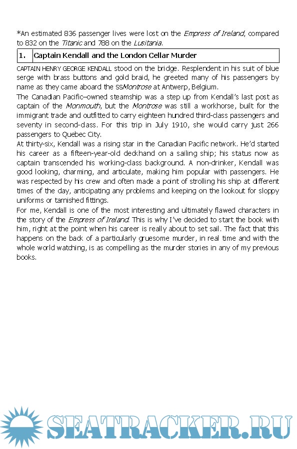 Beneath Dark Waters is an epic chronicle that restores the Empress of Ireland—largely forgotten in the shadow of the Titanic disaster—as well as its survivors and victims to their rightful place in maritime history.