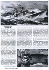 Год выпуска: 2024 Язык: Русский Автор: Муратов В. Жанр: Периодическое издание (журнал) Издательство: Моделист-Конструктор Издание: Морская коллекция 2024-05 (296) Формат: PDF Качество: Отсканированные страницы Количество страниц: 36 Описание: Якорное устройство. Корабль оснащен двумя становыми якорями Холла весом 2250 кг каждый и одним стоп-анкером весом 1000 кг. Носовые якоря на якорь-цепи калибром 37 мм, правая длиной 300 м, левая - 175 м, на правой 12 смычек, на левой - 7. Вес якорной цепи 14 270 кг. Средняя скорость выбирания якоря с глубины 275 метров по правому борту и 150 метров по левому борту около 18 м/мин. Нормальная глубина стоянки на якоре - 100 метров. Становые якоря убираются в стальные утопленные клюзы, расположенные в носовой части корабля. Подъем якорей производится электрогидравлическим якорно-швартовным шпилем типа ШЭГ-2 с двумя головками (правого и левого борта) с самостоятельными механизмами вращения, и гидродвигателями и общим насосом переменной производительности типа ЭМН 9/1 с электродвигателем МАФ 92-91/8. Головки шпиля снабжены цепными звездочками и швартовными барабанами. Шпиль оснащен ленточным тормозом с ручным приводом. Тормоз предназначен для регулирования скорости травления якоря и для удержания якоря с полностью вытравленной цепью при любом направлении вращения звездочки. Можно выбирать якорь вручную с помощью вымбовок. При подъеме якоря вручную с глубины 25 метров необходимо 17 работающих человек.