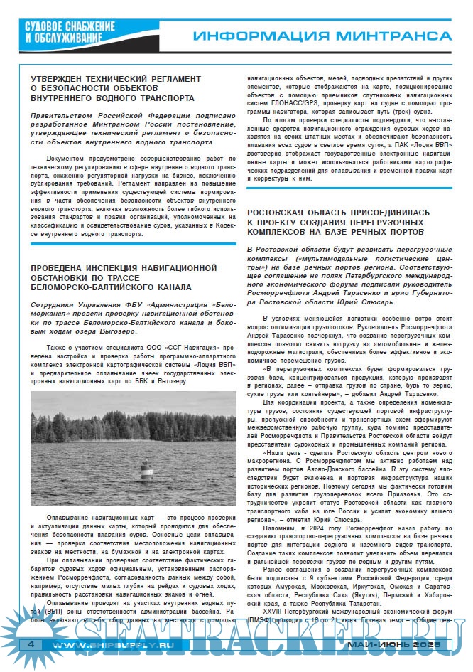 Описание: ''Судовое снабжение и обслуживание'' - периодический информационный бюллетень, издается с 1999 года и в настоящее время по праву занимает одно из ведущих мест среди специализированных отраслевых печатных изданий.Бюллетень стал надежным маркетинговым инструментом для технического менеджмента судостроительных, судоремонтных и снабженческих компаний. Более 500 отечественных и зарубежных фирм рекламодателей успешно сотрудничают с журналом с целью расширения своего бизнеса.Бесспорным преимуществом является бесплатное распространение издания целевой адресной рассылкой: судостроительным и судоремонтным предприятиям; морским и речным портам; судовладельцам морского, речного, промыслового флота; производителям и поставщикам судового оборудования, снабжения и материалов; предприятиям обслуживания флота (всего более 9000 компаний РФ).В журнале представлен весь спектр судового оборудования, комплектующих, запчастей, снабжения и материалов (с указанием контактных данных фирм производителей и поставщиков).