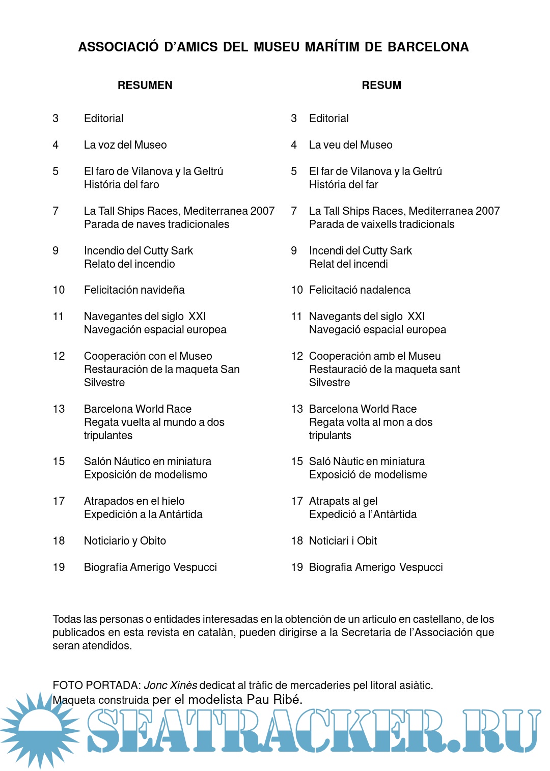 Year: 1994-2007 Language: Spanish Author: Associacio amics del Museu Maritim de Barselona Genre: Magazine Publisher: Associacio amics del Museu Maritim de Barselona Format: PDF Quality: Scanned pages Pages count: 700 Description: Revista de Associacio amics del Museu Maritim de Barselona.