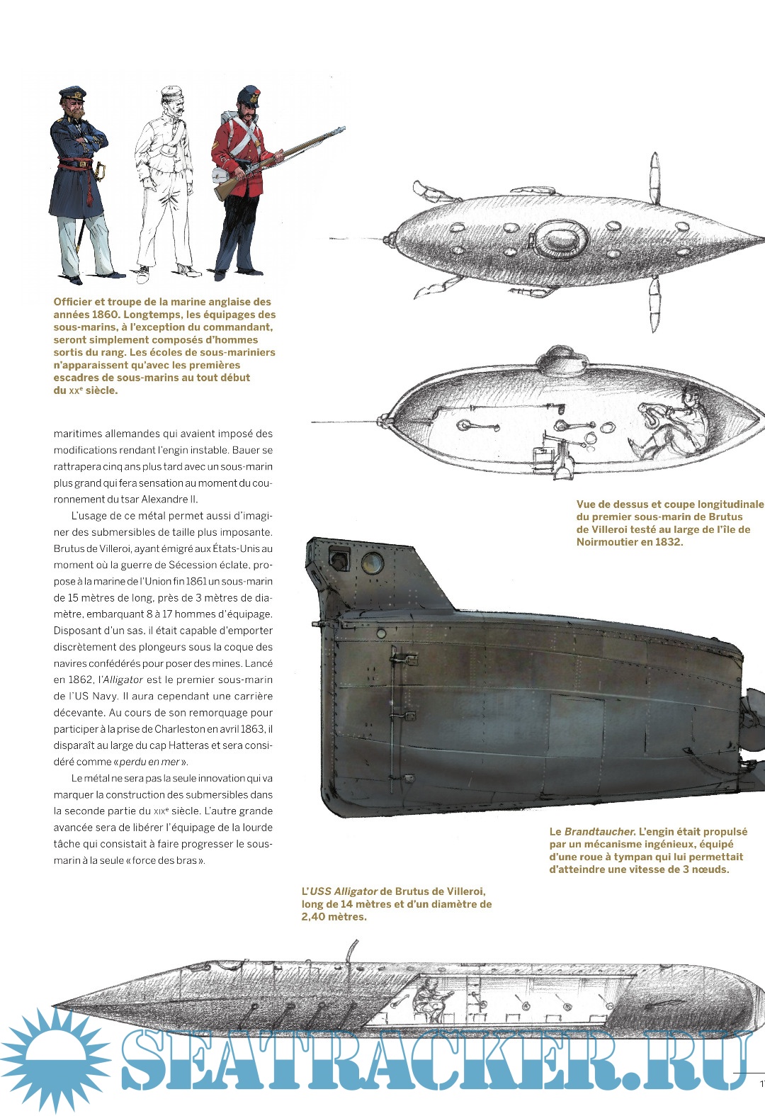 Year: 2020 Language: French Author: Delitte J.-Y. Genre: Historical Publisher: Glenat Format: PDF Quality: eBook Pages count: 82 Description: Plongée en dessin au coeur de l'histoire des sous-marins. Une double épopée, militaire et scientifique. Évoluer sous la surface de l’eau pour explorer les fonds marins ou passer inaperçu a depuis longtemps attiré les hommes. Au début par curiosité, mais très vite – l’homme est ainsi fait – à des fins militaires ou pécuniaires. L’apparition des navires cuirassés et des sous-marins à l’époque de l’ère industrielle va bouleverser les combats navals, faisant de la destruction pure et simple des forces ennemies l’objectif premier. La guerre sur mer devient sournoise, l’approche silencieuse et discrète, et c’est au tonnage ennemi coulé que l’on mesure les victoires. Le Hunley (1863) sera le premier sous-marin à couler un navire de guerre. Pendant les deux guerres mondiales du XXe siècle, les sous-marins seront une arme redoutable et les batailles sous-marines décisives, à l’instar de celles de l’Atlantique avec les U-Boote allemands, qui livreront une guerre totale. Mais l’histoire des sous-marins n’est pas seulement militaire, elle est aussi scientifique avec l’exploration des fonds sous-marins. Si les terres émergées ne réservent plus beaucoup de surprises, les profondeurs sous-marines restent pour partie Terra incognita ou plutôt Mare incognita. À bord de son bathyscaphe Le Trieste, Auguste Piccard réussit à descendre en 1960 dans la fosse des Mariannes, la plus profonde au monde (plus de 10 900 m). Conçu et illustré par deux dessinateurs d’exception, ce bel ouvrage raconte l’histoire des submersibles, depuis les premiers principes physiques posés par Archimède et le tonneau d'Alexandre le Grand au plan des sous-marins nucléaires modernes. Les grandes pages de l’histoire sous-marine, revisitées à travers une centaine de dessins. Погружение в самое сердце истории подводных лодок. Двойная эпопея: военная и научная. Погружение под воду, исследование морского дна или стремление остаться незамеченным издавна привлекали людей. Сначала из любопытства, но очень быстро – так устроен человек – ради военной или финансовой выгоды. Появление броненосных кораблей и подводных лодок в индустриальную эпоху произвело революцию в морском бою, сделав главной целью простое уничтожение противника. Война на море стала скрытной, подход – бесшумным и незаметным, а победы измерялись тоннажем потопленных кораблей. «Ханли» (1863) стала первой подводной лодкой, потопившей военный корабль. Во время двух мировых войн XX века подводные лодки были грозным оружием, и подводные сражения имели решающее значение, как, например, сражения в Атлантике с немецкими подводными лодками, которые вели тотальную войну. Но история подводных лодок не только военная, но и научная, связанная с исследованием морского дна. Хотя суша уже не таит в себе много сюрпризов, подводные глубины отчасти остаются Terra Incognita, или, скорее, Mare Incognita. На борту своего батискафа «Триест» Огюст Пиккар в 1960 году успешно спустился в Марианскую впадину, самую глубокую в мире (более 10 900 м). Эта прекрасная книга, оформленная и проиллюстрированная двумя выдающимися художниками, рассказывает историю подводных аппаратов – от первых физических принципов, установленных Архимедом, и бочки Александра Македонского до конструкции современных атомных подводных лодок. Великие страницы истории подводного мира, воссозданные в более чем сотне рисунков.