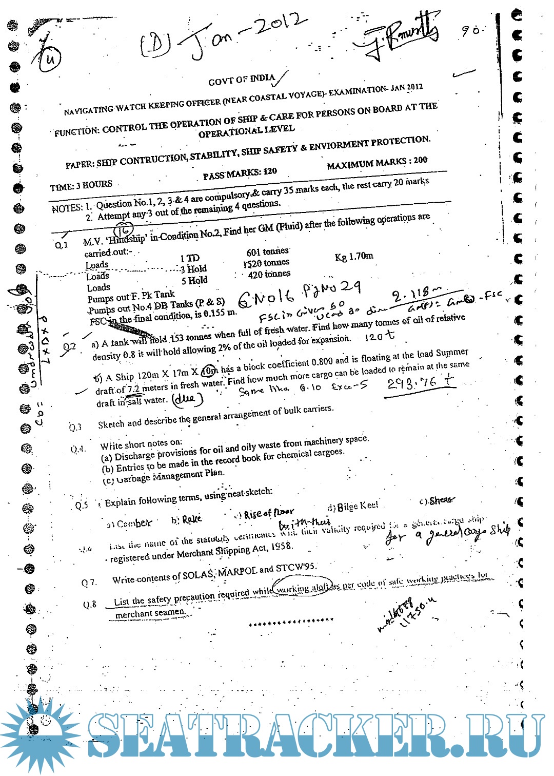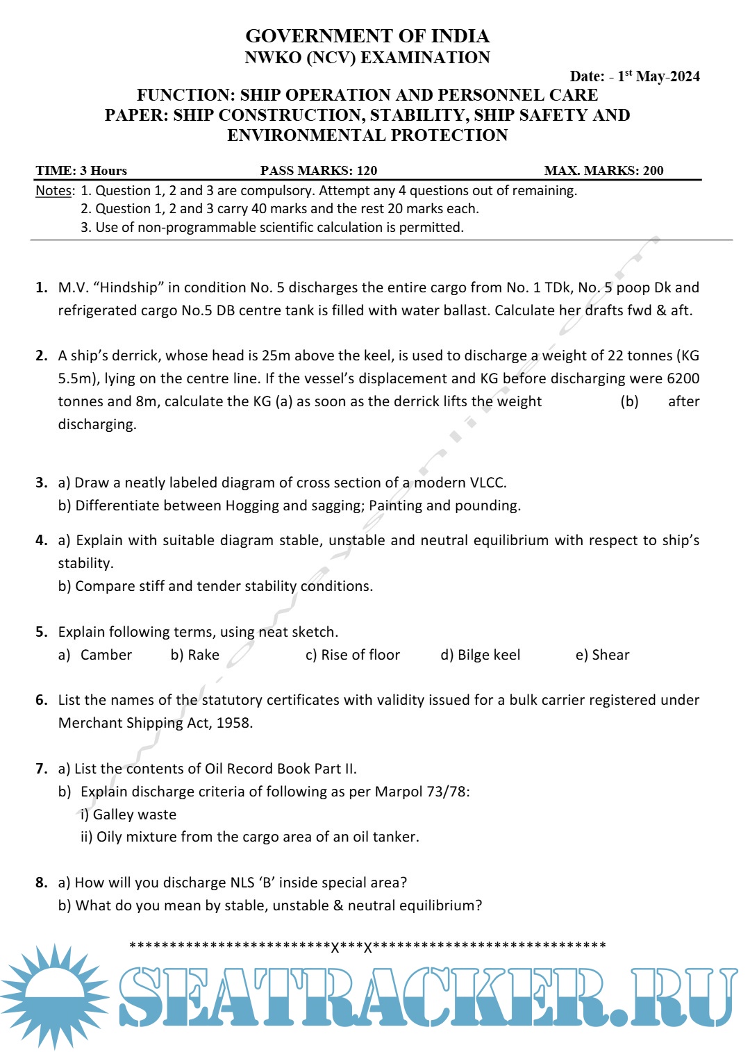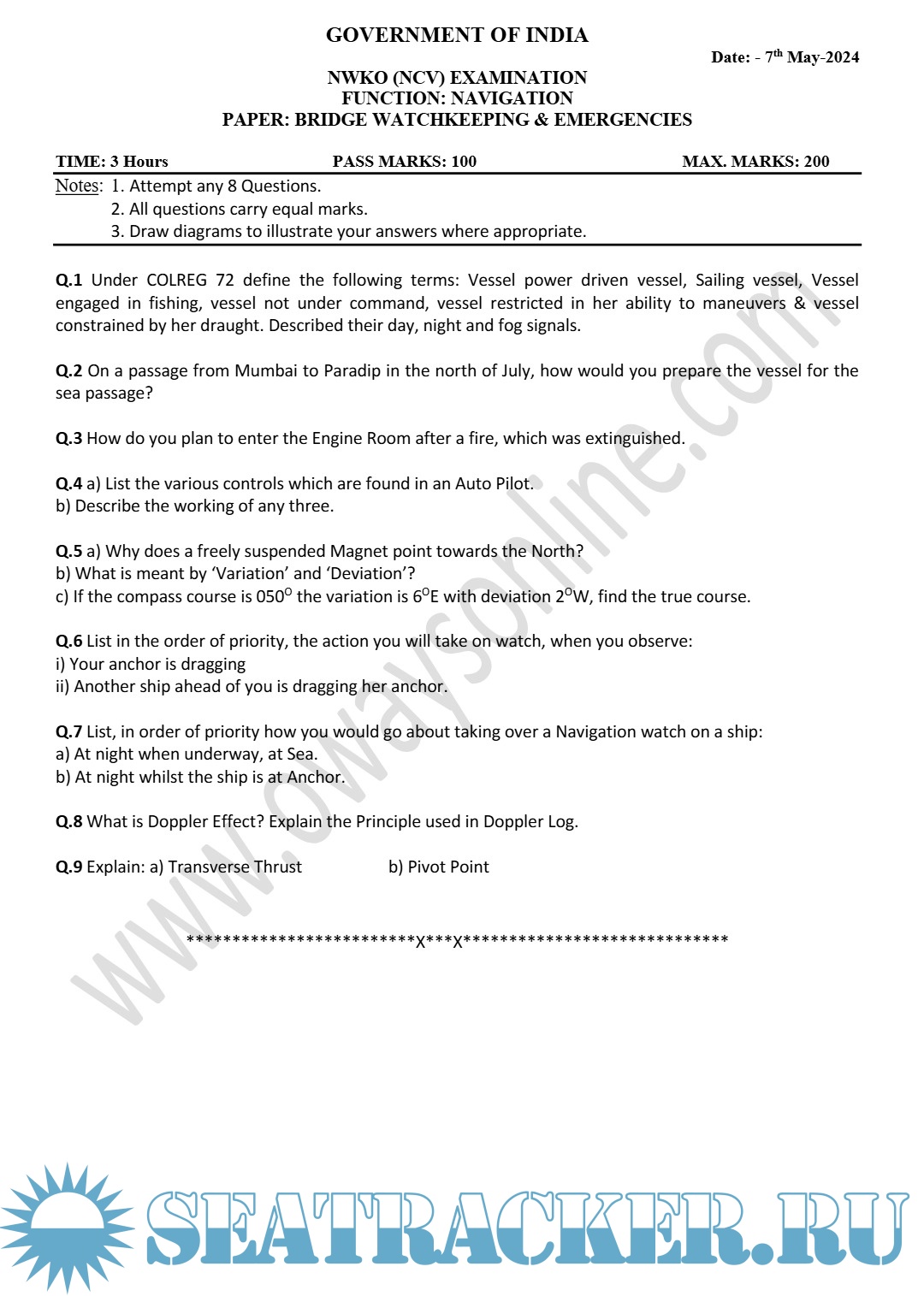 Description: Question paper sets for Officer In Charge of a Navigational Watch (Near Coastal Voyages) (NWKO NCV) Mercantile Marine Department (MMD), India Examinations.