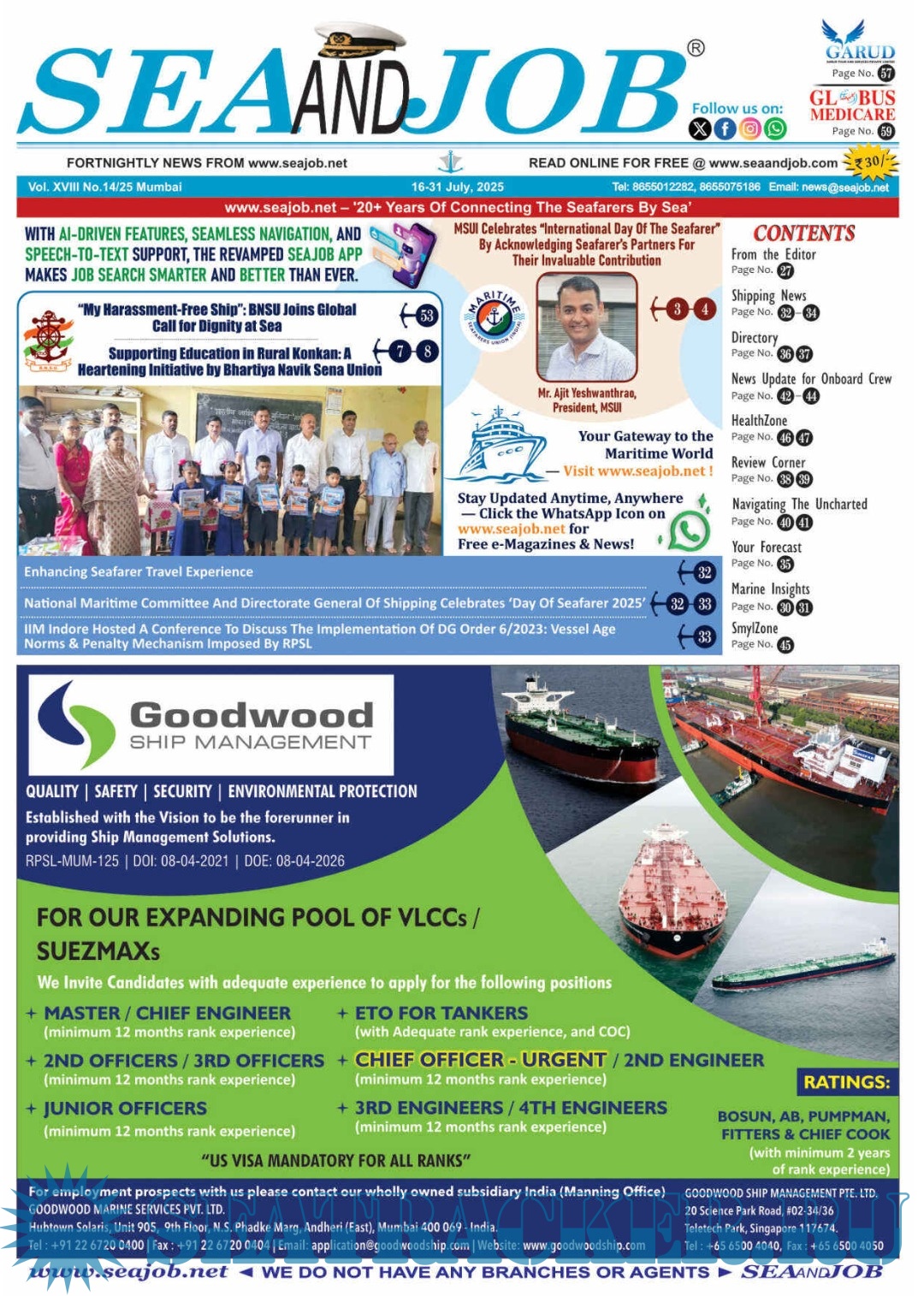 Year: 2025 Language: English Author: Sea Line Group Genre: Magazine, Periodical (Magazine) Edition: Vol. XVIII, No. 14/25 Format: PDF Quality: eBook Pages count: 72 Description: The Sea and Job magazine launched in May 2007, was the second venture of Sea Line Group succeeding 'seajob.net' bringing the much renowned essence to the Group, the Sea and Job Magazine quickly gained popularity, becoming the No. 1 Shipping Magazine that came to be widely circulated all over India.Sea and Job over the years has evolved as the most trusted, ethical, objective and read maritime publication that possesses a large database of subscribers from various verticals in the industry.The magazine provides informative and interesting articles covering not just the shipping world but also the world outside it. Sea and Job is also a medium for the shipping/ manning companies to advertise marine jobs and also to promote their organization by publicizing internal activities like seminars, sports events and parties.Some notable endeavors of the magazine include the Know Your Recruiter Column, the Sailing Episodes Column and the Marine Insights section. The consistent efforts and the dedication to provide extraordinary services to the industry has resulted in the magnifying popularity and patronage of Sea and Job. Additional info: 16-31 July 2025.