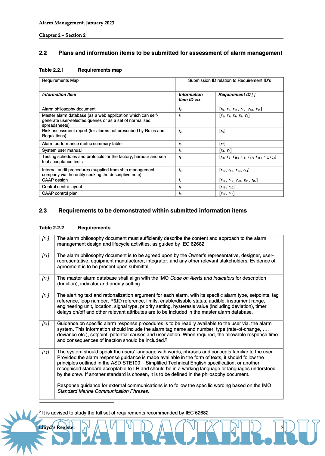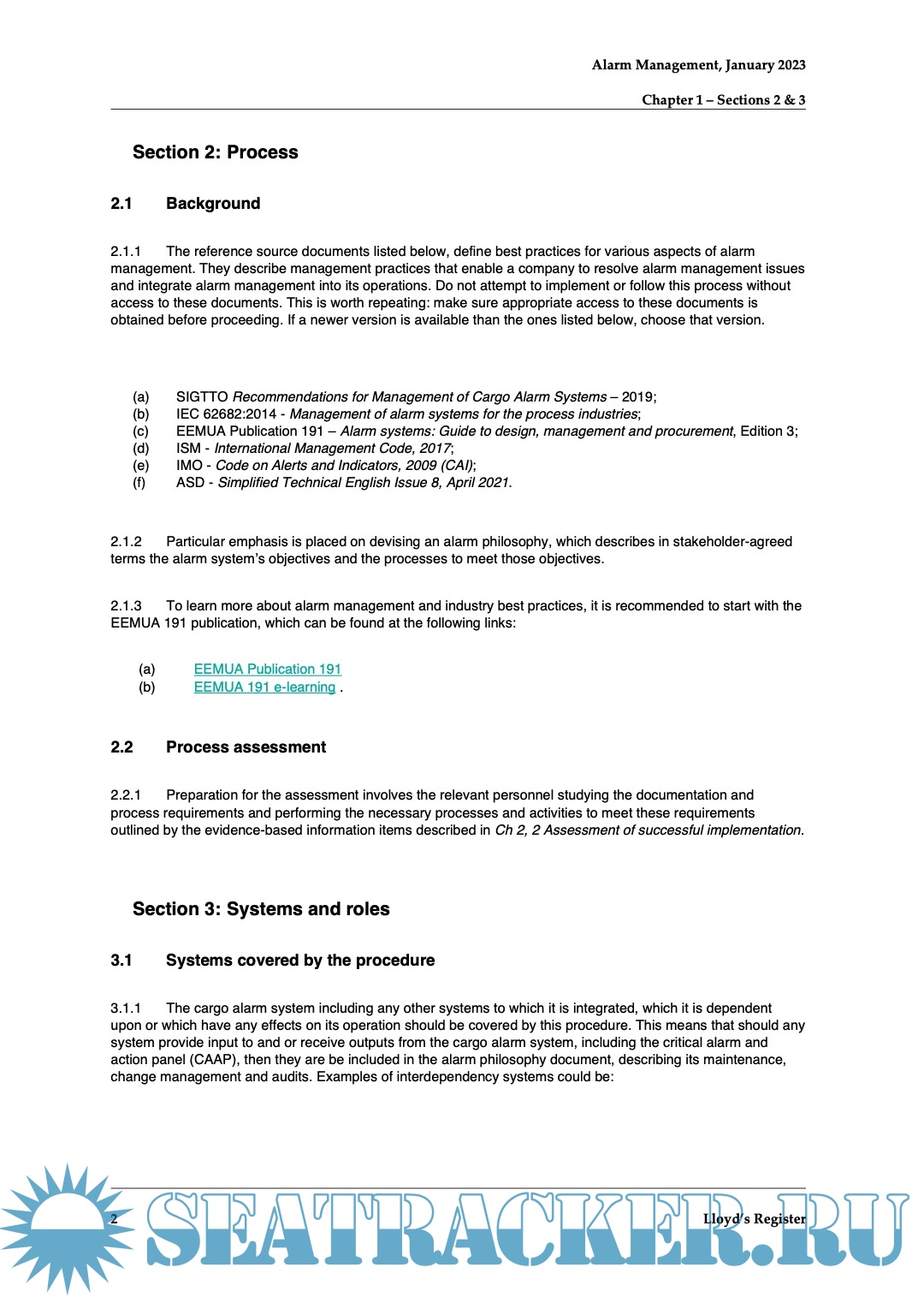 Description: This procedure details Lloyd’s Register’s (LR’s) process for the assessment of cargo alarm management systems on board ships carrying liquefied gasses in bulk and classed by LR. It provides additional guidance for satisfying the requirements which exceed those of Classification Rules and Statutory Conventions where inadequate alarm management and poor processes risks are significant.