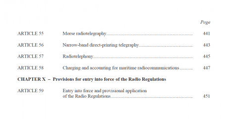 Description: The Radio Regulations, Edition of 2024, contains the complete texts of the Radio Regulations adopted by the World Radiocommunication Conference of 1995 (WRC-95) and reviewed by the subsequent World Radiocommunication Conferences: WRC-97 (Geneva, 1997), WRC-2000 (Istanbul, 2000), WRC-03 (Geneva, 2003), WRC-07 (Geneva, 2007), WRC-12 (Geneva, 2012), WRC-15 (Geneva, 2015), WRC-19 (Sharm el-Sheik, 2019) and WRC-23 (Dubai, 2023).