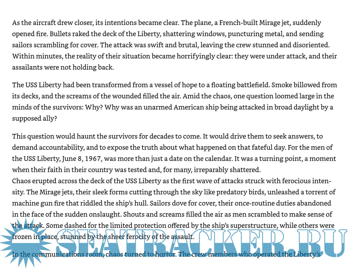 Year: 2024 Language: English Author: Samuel Carter Genre: Historical Publisher: Independently published Format: PDF Quality: eBook Pages count: 178 Description: USS Liberty Survivors: Betrayed by Their Own Country is a gripping non-fiction account that delves into the tragic attack on the USS Liberty during the Six-Day War on June 8, 1967. This book chronicles the harrowing experiences of the ship’s survivors, the controversial geopolitical motivations behind the assault, and the decades-long fight for justice and recognition. The USS Liberty, an American intelligence ship stationed in international waters near the Sinai Peninsula, was suddenly and brutally attacked by Israeli forces. Despite its clear markings and neutral position, the ship endured an onslaught of bombs, torpedoes, and machine-gun fire, resulting in the loss of 34 crew members and injuries to 171 others. Survivors of the attack recount the chaos, bravery, and determination that kept the ship afloat against all odds. Equally compelling is the aftermath of the attack. Survivors reveal a shocking betrayal: a U.S. government cover-up prioritizing diplomatic relations with Israel over the lives of American sailors. The book explores President Lyndon B. Johnson’s calculated decisions, the silencing of survivors, and the systematic suppression of information, leaving the crew feeling abandoned by their own country. Through interviews, declassified documents, and expert analysis, the book uncovers the political and strategic factors driving the attack and its cover-up. It contextualizes the incident within the Cold War era, the Six-Day War, and the evolving U.S.-Israel alliance, offering readers a deep understanding of the broader implications of this tragedy. A testament to resilience and the pursuit of truth, USS Liberty Survivors: Betrayed by Their Own Country celebrates the courage of the men who survived the attack and their unwavering determination to honor their fallen shipmates. Their story is a powerful reminder of the cost of secrecy, the importance of accountability, and the enduring fight for justice.