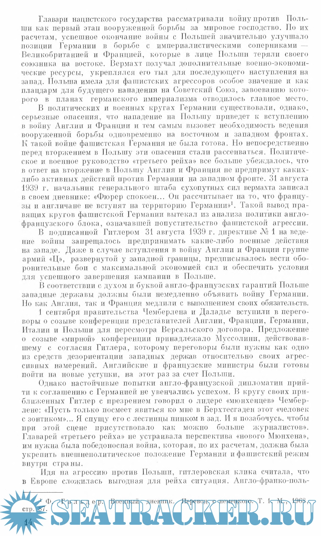 Год выпуска: 1973 - 1982 Язык: Русский Автор: Коллектив авторов Жанр: Историческое Издательство: Воениздат Формат: DjVu Качество: Отсканированные страницы Количество страниц: 595 Описание: Первый том охватывает период с конца первой мировой войны до осени 1935 г. Его первая часть посвящена зарождению войны в системе мирового империализма, показу фашизма как ударной силы империализма и милитаризма, истории возникновения первых очагов новой мировой войны. Во второй части тома раскрывается всемирно-историческое значение строительства социализма в СССР, развитие его Вооруженных Сил, напряженная борьба миролюбивых народов во главе с Советским Союзом против опасности новой мировой войны. Второй том посвящен событиям, связанным с непосредственной подготовкой второй мировой войны империалистическими государствами, переходом европейского фашизма к открытой вооруженной агрессии, разоблачением политики попустительства агрессорам со стороны Англии, Франции и США. Третий том рассматривает военные действия в Европе, непосредственную подготовку фашистской Германии к нападению на СССР и подготовку Советского Союза к отражению агрессии. Четвертый том посвящен политическим и военным событиям, связанным с расширением масштабов войны в результате вероломного нападения Германии на Советский Союз и агрессии Японии против США и Англии. Пятый том рассматривает военные действия летом и осенью 1942 г., и ходе которых усилиями советского народа были сорваны планы фашистской Германии сокрушить СССР в этом году и расширить фронт агрессии в странах Ближнего и Среднего Востока, а также подготовлены условия для коренного перелома во второй мировой войне. Шестой том охватывает события важнейшего этапа минувшей войны, когда начался и нарастал коренной перелом в пользу антигитлеровской коалиции. В томе показана решающая роль СССР и его Вооруженных Сил в созданий этого перелома. Седьмой том посвящен исследованию военных, политических и экономических процессов, определивших завершение коренного перелома в войне, показу решающей роли СССР в этом переломе и началу распада фашистского блока. Восьмой том рассматривает события первой половины 1944 г., в результате которых были сорваны планы фашистской Германии на затягивание войны путем стабилизации советско-германского фронта. Освещаются мероприятия союзников по подготовке открытия второго фронта в Европе. Девятый том исследует крупнейшие победы Советских Вооруженных Сил, которые привели к полному изгнанию фашистских агрессоров с советской территории и освобождению стран Восточной и Юго-Восточной Европы. В томе освещаются события, связанные с открытием второго фронта союзниками, военные действия на Тихом океане и в Азии. Десятый том посвящен завершающим победам Советских Вооруженных Сил и войск союзников над гитлеровской армией, приведшим к безоговорочной капитуляции фашистской Германии, раскрытию ведущей роли Советского Союза в принятии решений на конференциях в Ялте, Потсдаме и Сан-Франциско по послевоенному устройству мира. Одиннадцатый том раскрывает агрессивную политику японского милитаризма, разгром и безоговорочную капитуляцию Японии, разоблачает реакционную сущность атомной стратегии США, показывает освободительную миссию Советских Вооруженных Сил на Дальнем Востоке. Двенадц