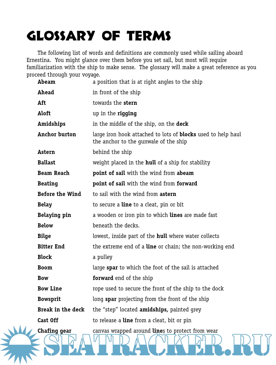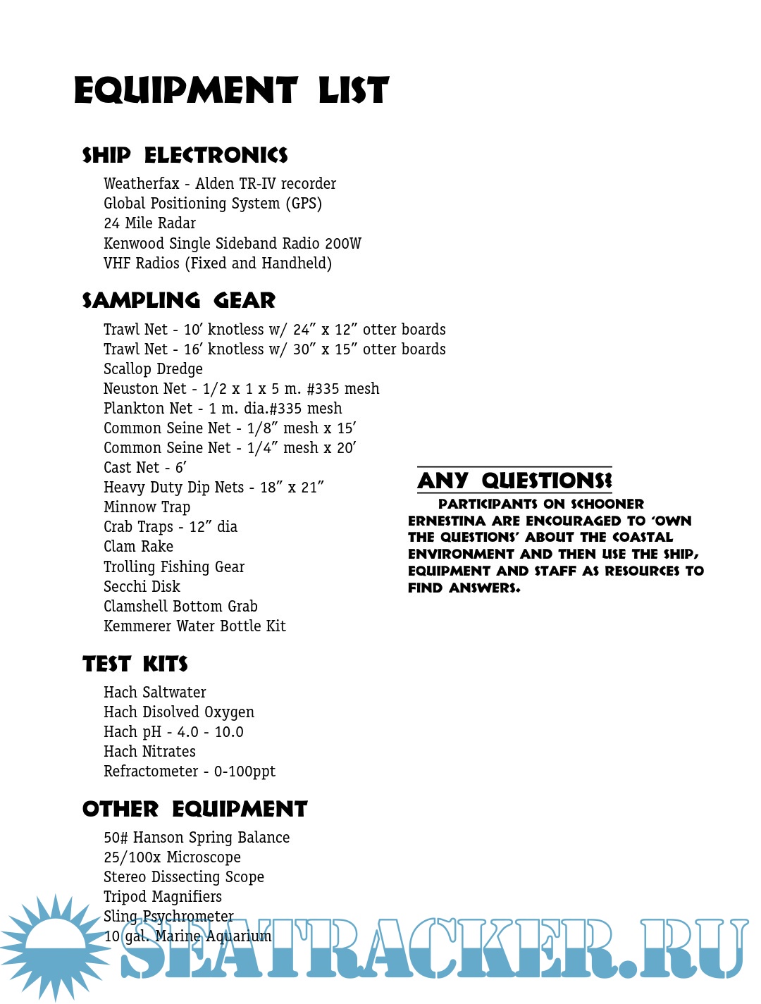Description: You will be stepping aboard a ship that is a survivor. She has preserved her crew for hundreds of thousands of miles during more than a century of work and exploration. As you come aboard and throw your energy together with others to travel out to sea, you should know that you will inevitably leave some of your soul behind walking the deck, and take something as equally powerful with you.