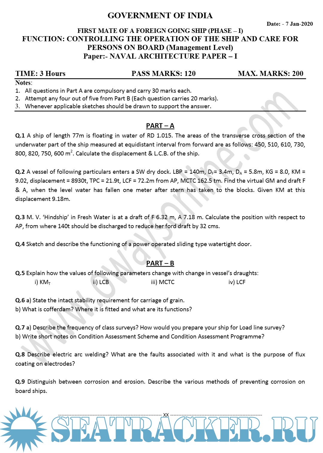 Question Paper Set for Naval Architecture I (July 2022) for Phase I (Chief Mate F.G.) Mercantile…