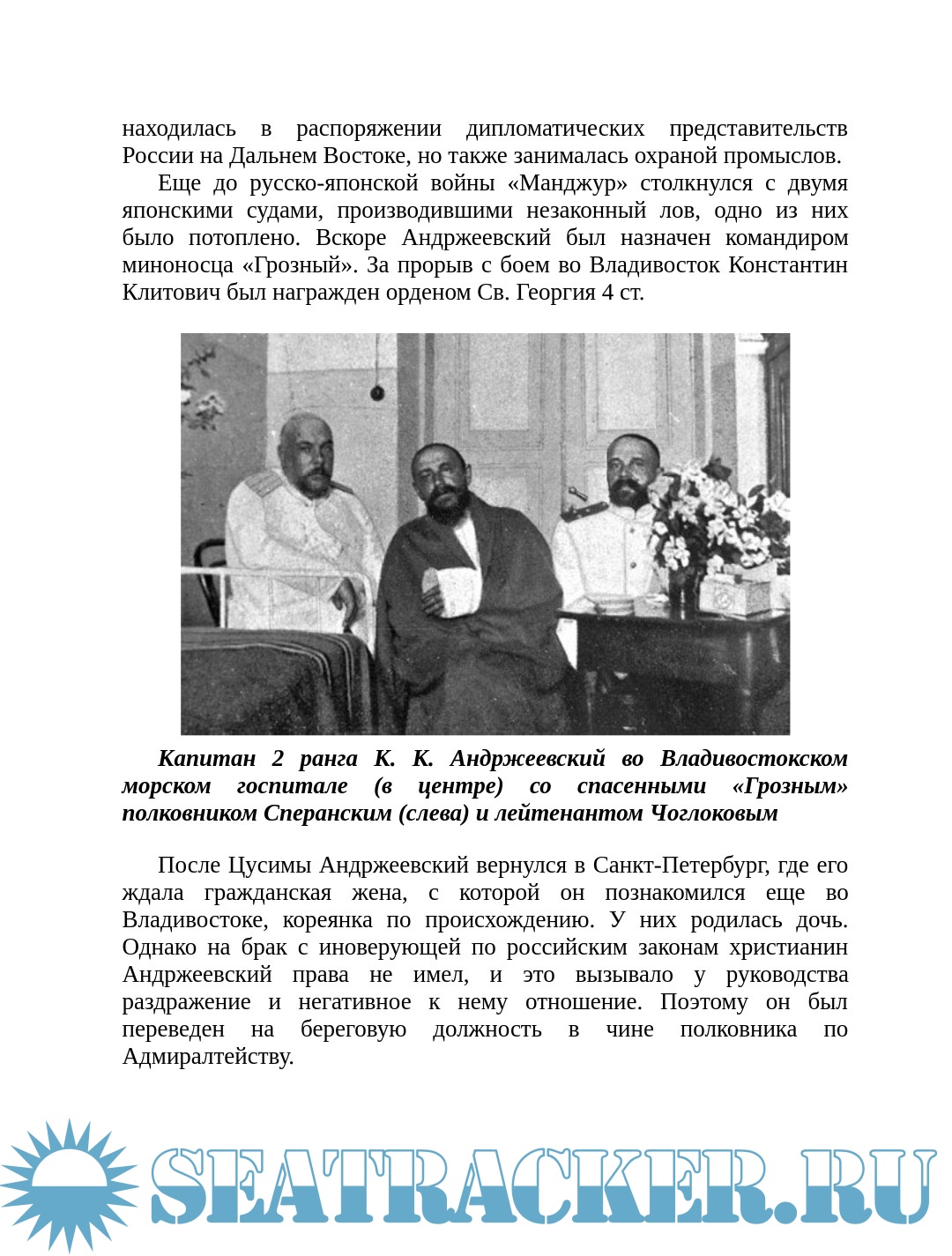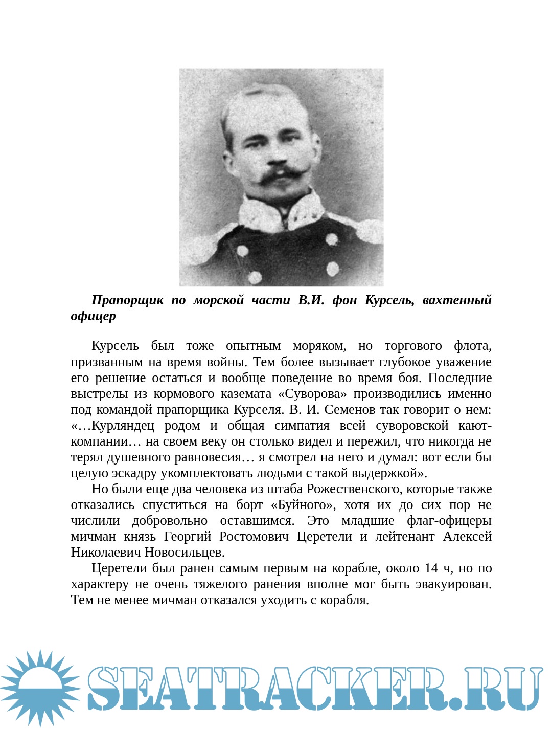 Описание: Эта книга о моряках 2-й Тихоокеанской эскадры, погибших или оставшихся в живых в ходе трагического морского Цусимского сражения русско-японской войны 1904–1905 гг. Показано их мужество и подвиги, совершенные во имя присяги и верности Отечеству, несмотря на крайне тяжелые условия сражения. Рассказывается также о судьбах моряков, выживших после Цусимы и об их вкладе в развитие флота после войны. Впервые в одной книге приведены все доступные фотографии участников сражения. Книга может быть полезна всем, интересующимся историей российского военно-морского флота и судьбами людей, посвятившими ему всю свою жизнь.