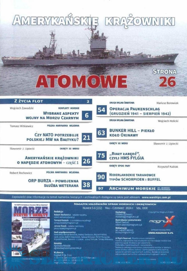Year: 2024 Language: Polish Author: группа авторов Genre: Periodical publication Edition: 2024 05-06 Format: PDF Quality: Scanned pages Pages count: 98 Description: Польский морской журнал. Издается с 1996 года, первоначально как ежеквартальный. С 1999 года издается раз в два месяца, а с 2007 года-как ежемесячный. Первоначально назывался Morza Statki i Okrety, в 2006 году переименован в Morze Statki i Okrety. С 2004 года полностью цветной (ранее только вставки). В 2008 году стали издаваться специальные выпуски, первоначально нерегулярные. С 2014 года выпускается как обычное издание и специальное издание, с непрерывной нумерацией.