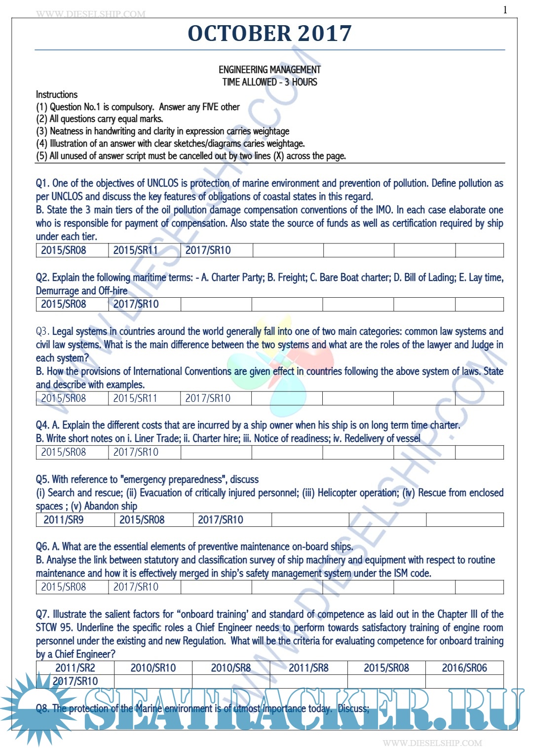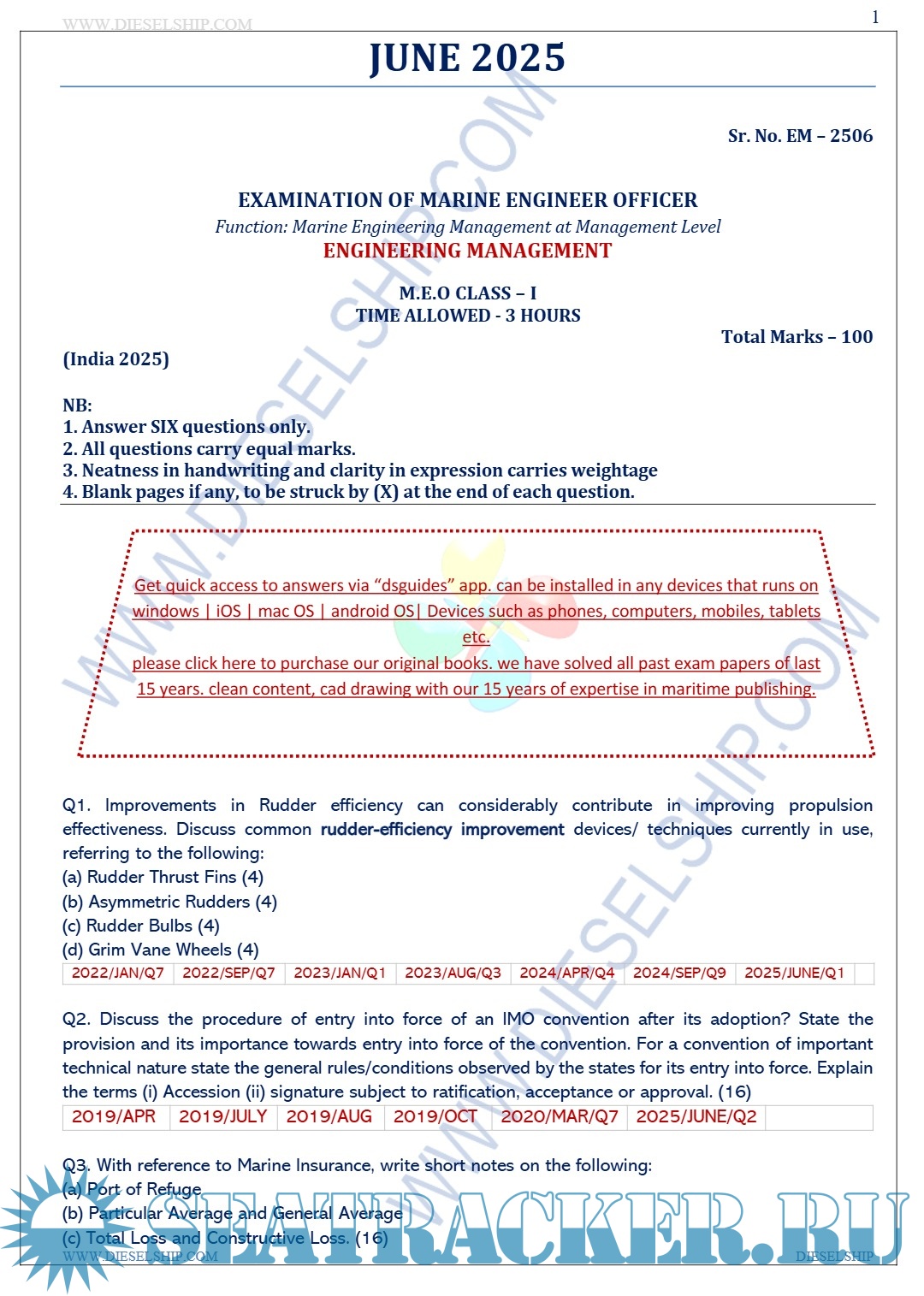 Description: M.E.O. Class I Question Paper set for Mercantile Marine Department (MMD), D.G. Shipping India Exams.
