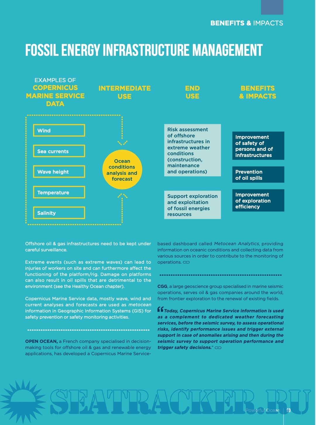 Description: We can all find out thanks to operational oceanography, a fairly recent scientific discipline combining progress in Earth observation by satellites with numerical modelling and assimilation of observation data. This enables scientists to analyse, simulate, predict and monitor the physical, dynamic and biogeochemical characteristics of the ocean, both at the surface and at depth, at global and regional scales. The parameters include sea temperature, salinity, currents, sea surface height, ice thickness, chlorophyll concentration, nutrients, etc.