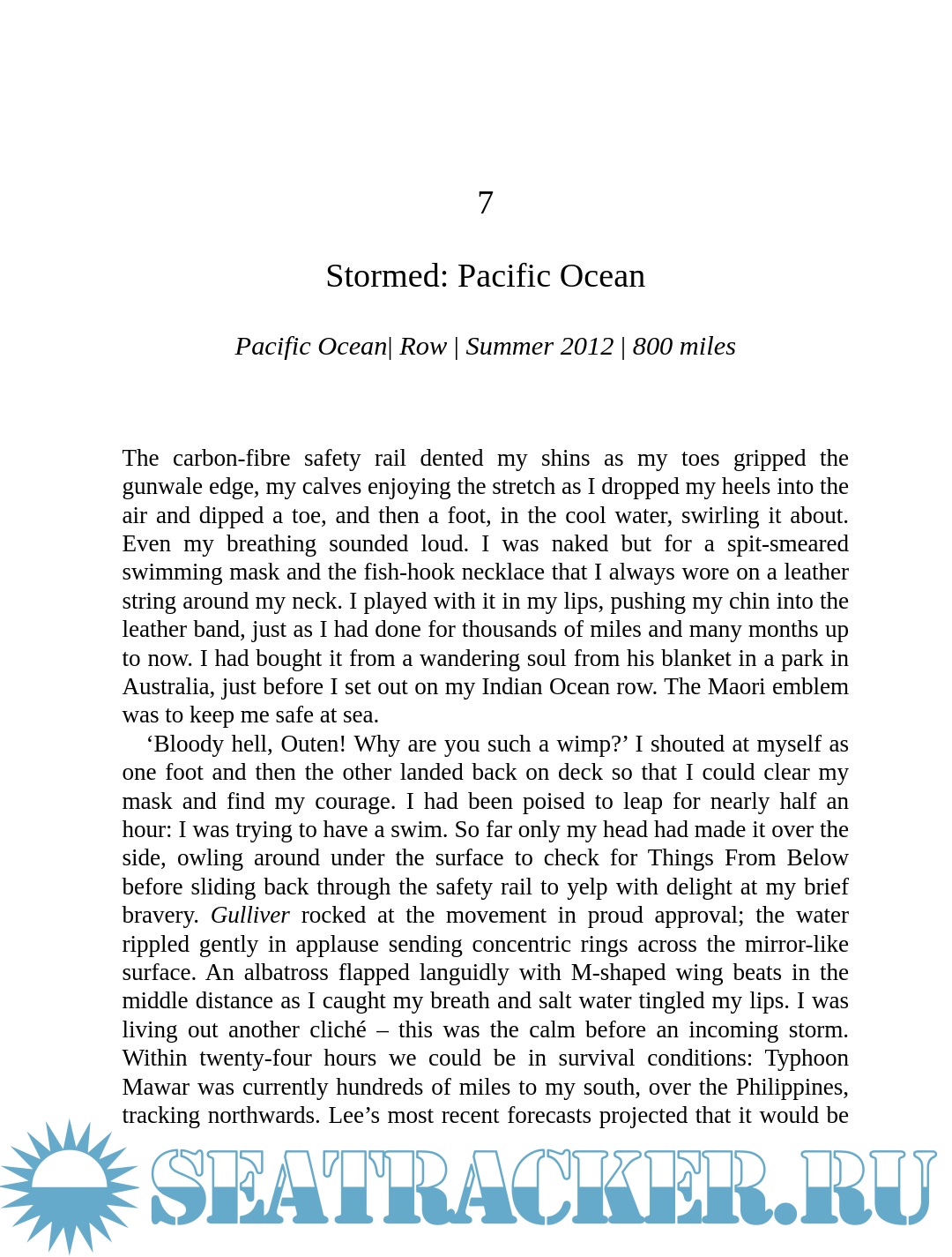 But that wasn't the end. Despite ill health and depression, giving up was not an option. So Sarah set off once more to finish what she had started, becoming the first woman to row solo from Japan to Alaska, as well as the first woman to row the mid-Pacific from West to East. She kayaked the treacherous Aleutian chain and cycled North America, before setting out on the Atlantic, despite the risk of another row-ending storm...