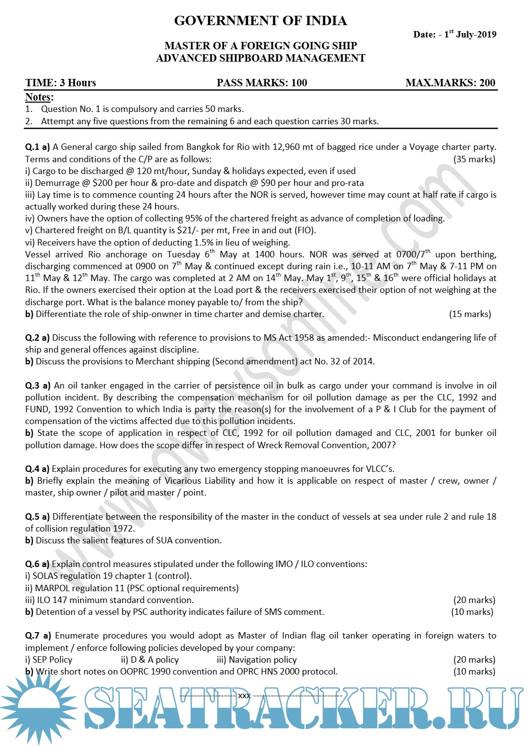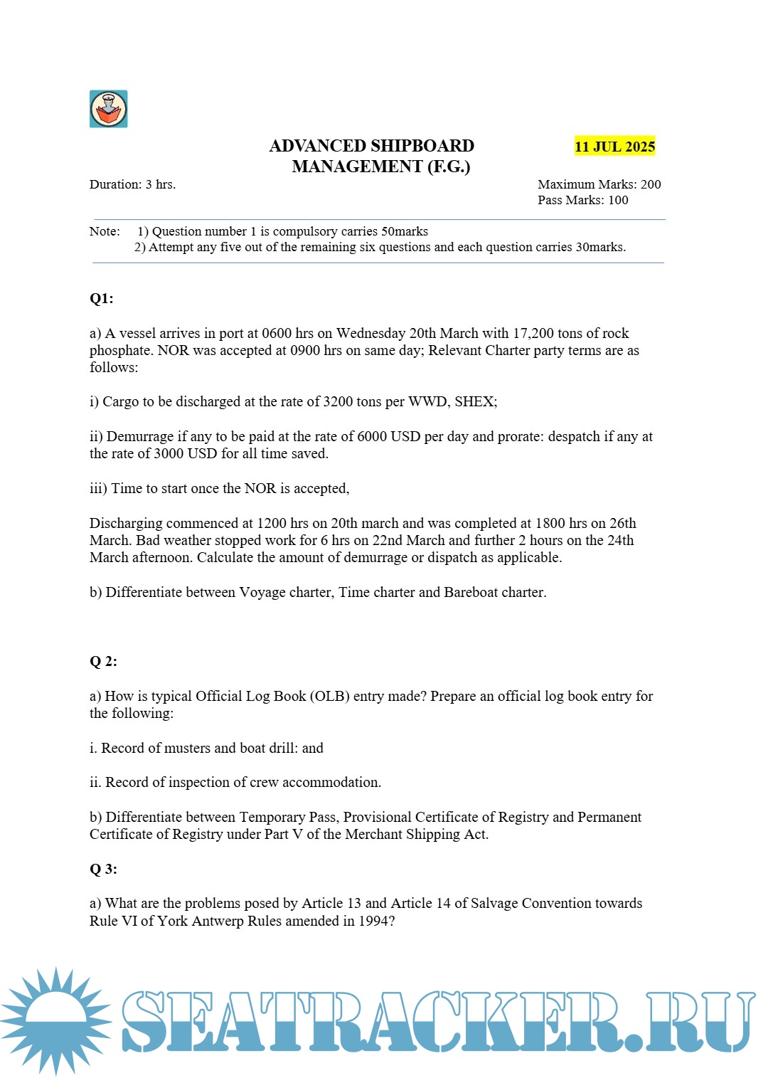 Description: Paper: ASM - Advanced Shipboard ManagementMaster's examinations