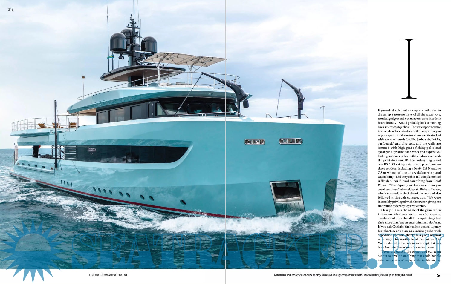 Description: Boat International is the number ONE magazine in the international superyacht market. Launched in 1983 it has been the voice of record charting the superyacht industry for over 25 years and is the globally acknowledged authority in its field. The world's only monthly superyacht magazine, Boat International delivers exclusive and unrivaled coverage of power and sail yachting from the world's best journalists and photographers