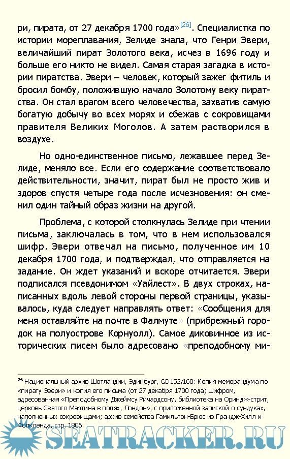 Тайна исчезновения Генри Эвери оставалась нераскрытой больше трех веков. И вдруг авторы книги нашли в архиве зашифрованное письмо. На основе этого документа они выдвинули свою версию дальнейшей жизни «короля пиратов», связав его с другими знаковыми личностями начала XVIII века — писателем и тайным агентом Даниелем Дефо, королем Вильгельмом III и королевой Анной, архиепископом кентерберийским Томасом Тенисоном — злейшим врагом католической Франции.