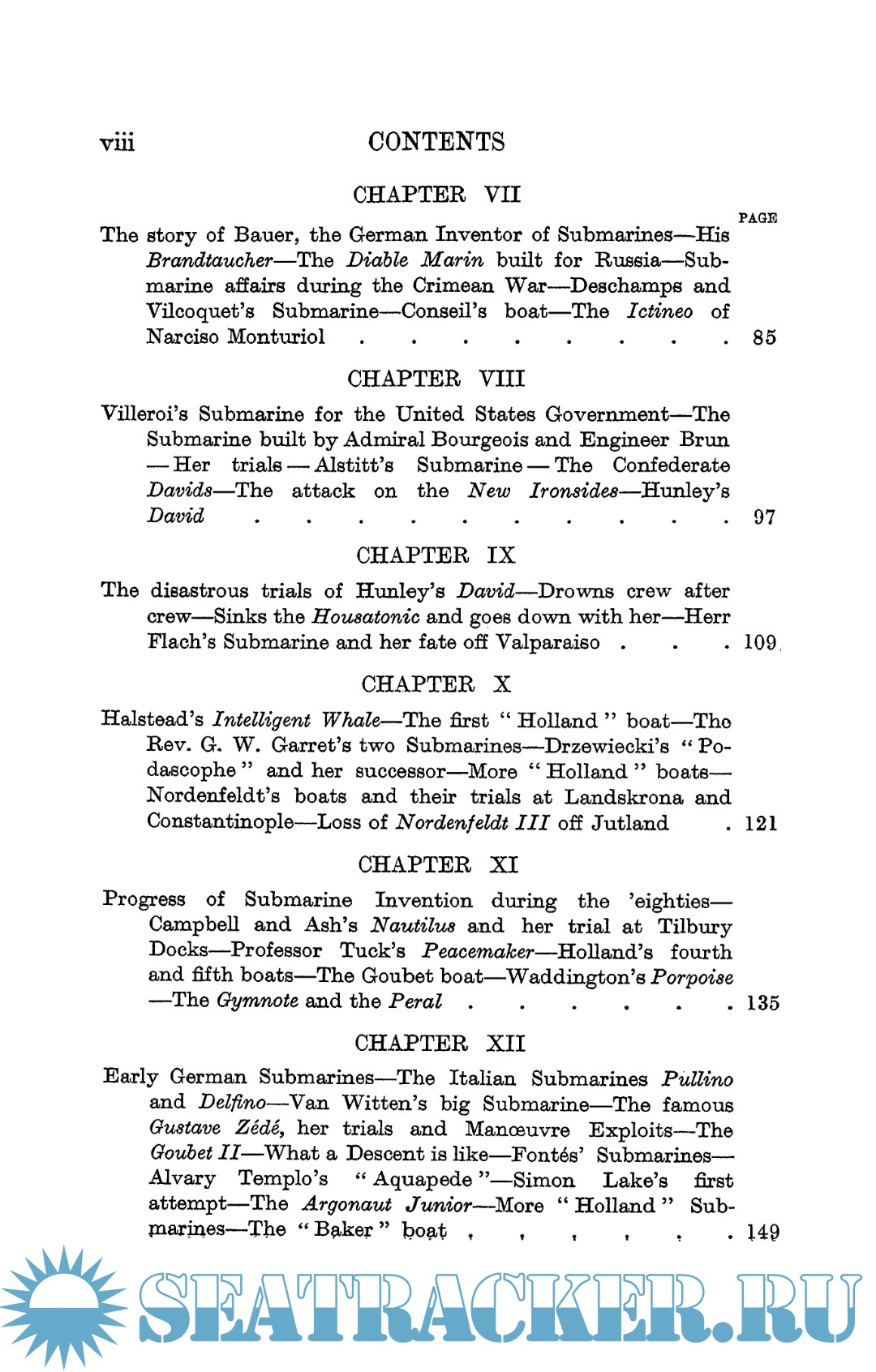Year: 1908 Language: English Author: Field C. Genre: Historical Format: PDF, EPUB Quality: Scanned pages Pages count: 313 Description: The story of the submarine - from the earliest ages to the present day. Appendix I. Chronological list of the principal submarine and semi-submarine vessels either built or proposed from the earliest times to A.D. 1900 inclusive. Appendix II. Table of submarine torpedo-boats built, building or projected for the navies of the world.