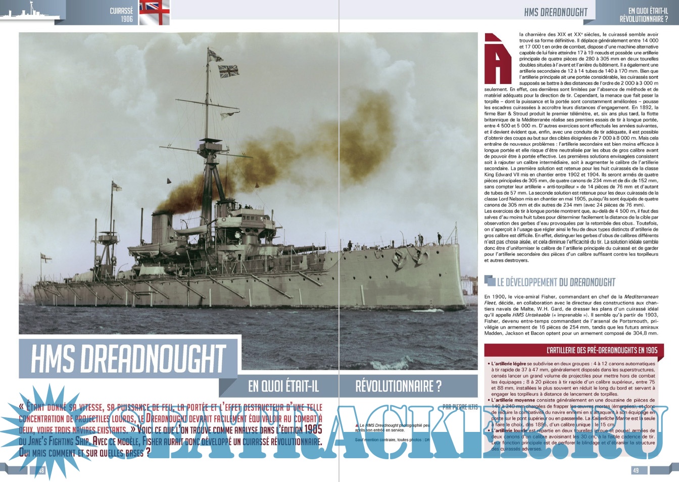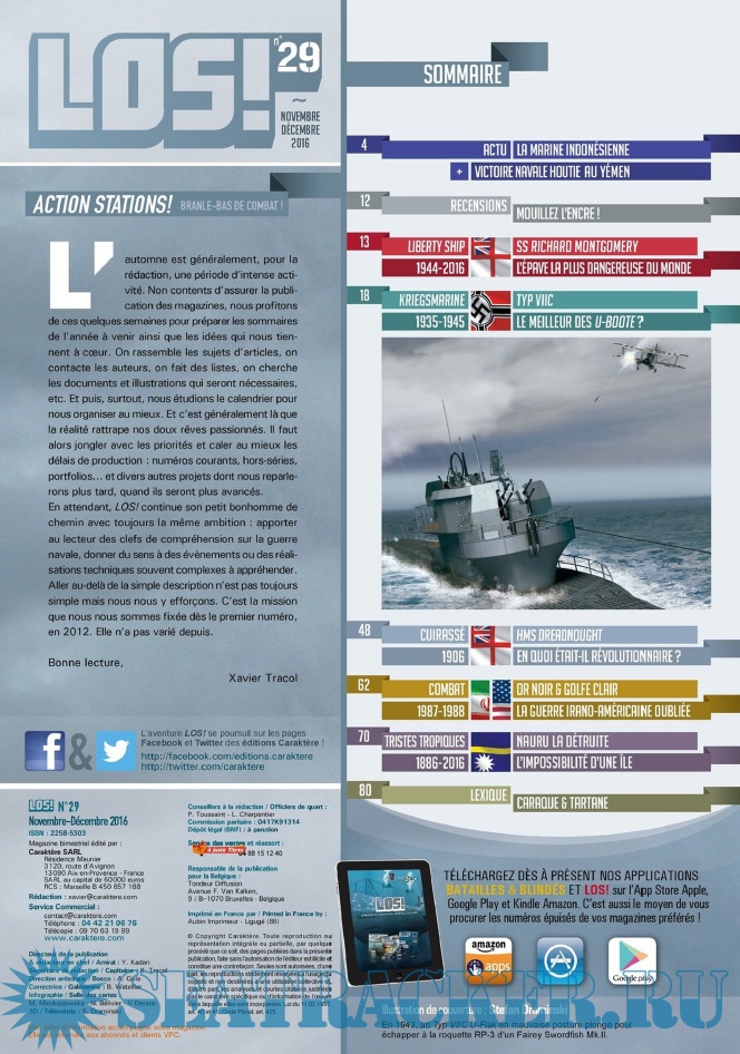 Description: LES ÉDITIONS CARAKTÈRE PRENNENT LE LARGE EN LANÇANT UN NOUVEAU MAGAZINE CONSACRÉ À LA GUERRE NAVALE !Les sujets passionnants ne manquent pas et LOS ! met un point d’honneur à les présenter au lecteur comme cela n’a jamais été fait dans la presse française jusqu’à présent. Un seul mot d’ordre pour l’équipe rédactionnelle : rigueur scientifique et présentation ludique !S’appuyant sur un fond photographique d’exception, sur des plans de bateaux et d’avions, les éditions Caraktère innovent une fois de plus en vous proposant aussi des vues 3D détaillées, le tout au service de textes soigneusement rédigés par des auteurs spécialisés. Vous comprendrez ainsi comment fonctionne un submersible, comment se déroule un combat naval, comment est conçu un cuirassé ou comment attaquent les avions-torpilleurs !Revivez au fil des pages l’aventure humaine exceptionnelle des matelots de la marine marchande affrontant les U-Boote en Arctique, ou celle des pilotes embarqués sur les porte-avions américains et japonais. Lisez les exploits des hommes-grenouilles italiens en Méditerranée, des équipages des vedettes lance-torpilles dans la Manche, des sous-marins soviétiques de la guerre froide ou des grands cuirassés de 1914-18