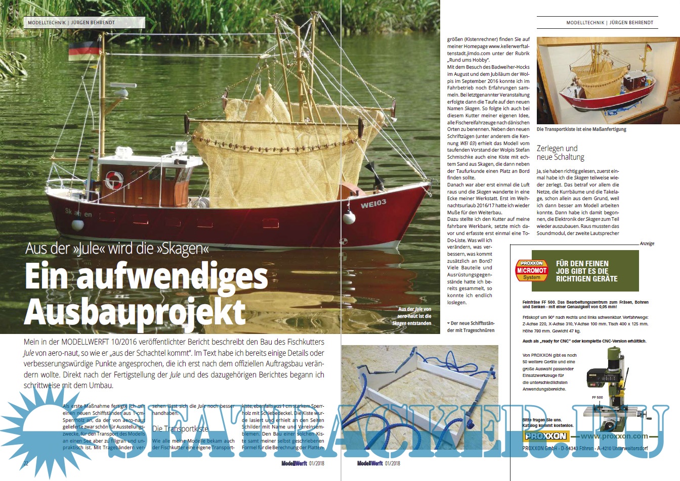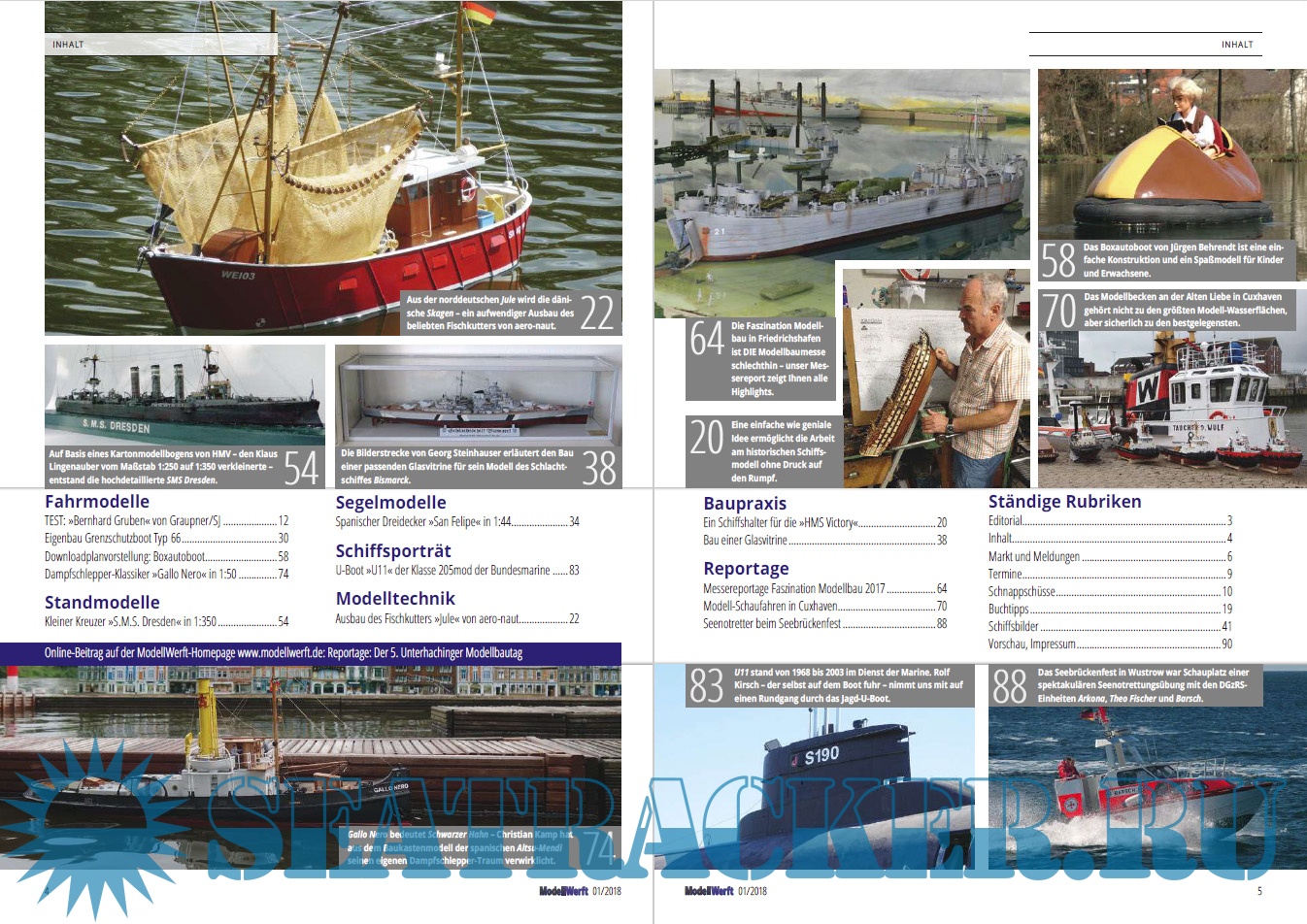 Year: 2018 Language: German Author: Eric Schafenrort (Redaktor) Genre: Periodical publication Edition: 2018-01 Format: PDF Quality: eBook Pages count: 92 Description: Das führende Fachmagazin für Schiffsmodellbauer. Egal ob Stand- oder Fahrmodell, ob kleines Segelboot oder gigantisches Kreuzfahrtschiff. Die Modellwerft informiert über Neuheiten, hilft mit Bautipps und fasziniert mit besonderen Reportagen.