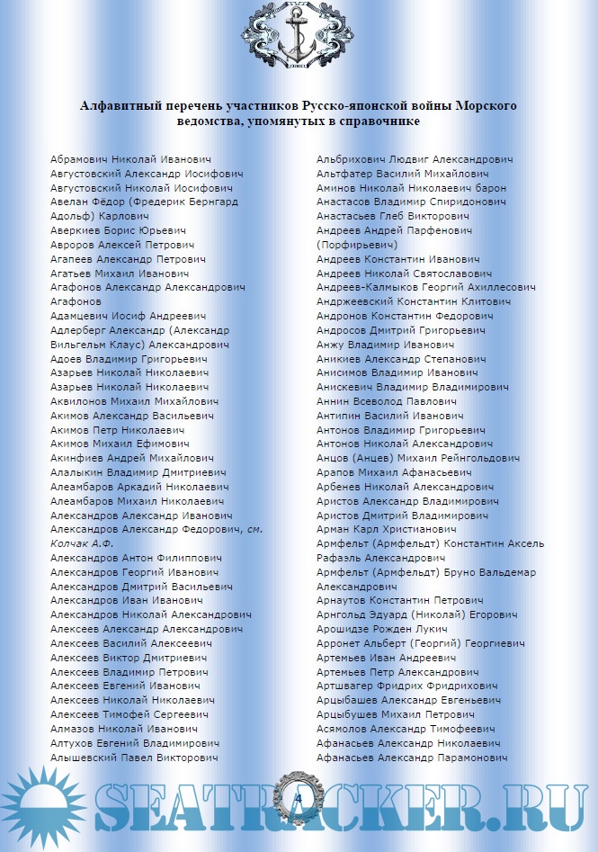 Офицеры флота, Корпусов, Гражданские и Медицинские чины, Судовые священники Морского ведомства - участники Русско-японской войны 1904-1905 г.г.