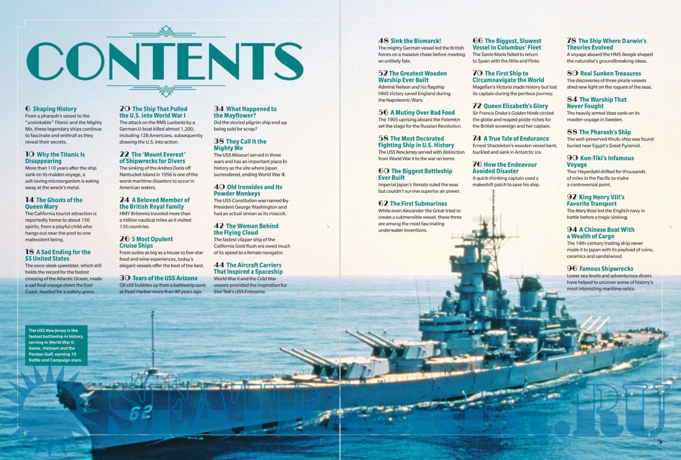 Description: Discover the captivating world of Legendary Ships in our exclusive Collector's Special Edition, where over 50 amazing tales unveil the Secrets of the Sea. Explore the haunting legends of The Queen Mary's angry ghosts, the daring escapades of pirate ships, and the mysteries behind sunken treasures like the Titanic, USS Arizona, Bismarck, and Mayflower. Dive into these enthralling stories that will ignite your imagination and awaken your inner adventurer!
