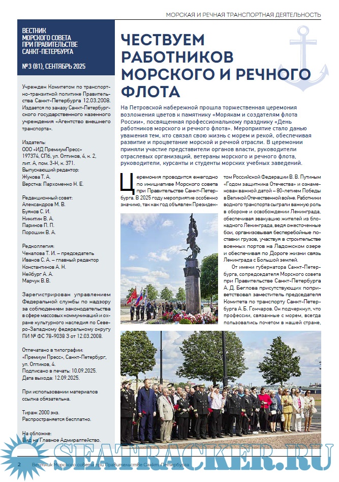 Описание: «Вести морского Петербурга» - Информационно-аналитический журнал отражает все тенденции развития морской составляющей экономики Санкт-Петербурга, а также транспортного комплекса России и европейских государств. Рубрики журнала: Морская столица, Порты и терминалы, Отраслевое законодательство, Судостроение, Морской и речной транспорт, Транспорт и логистика, Новые технологии, Таможня, Наука и образование, Морская история, Морское страхование.