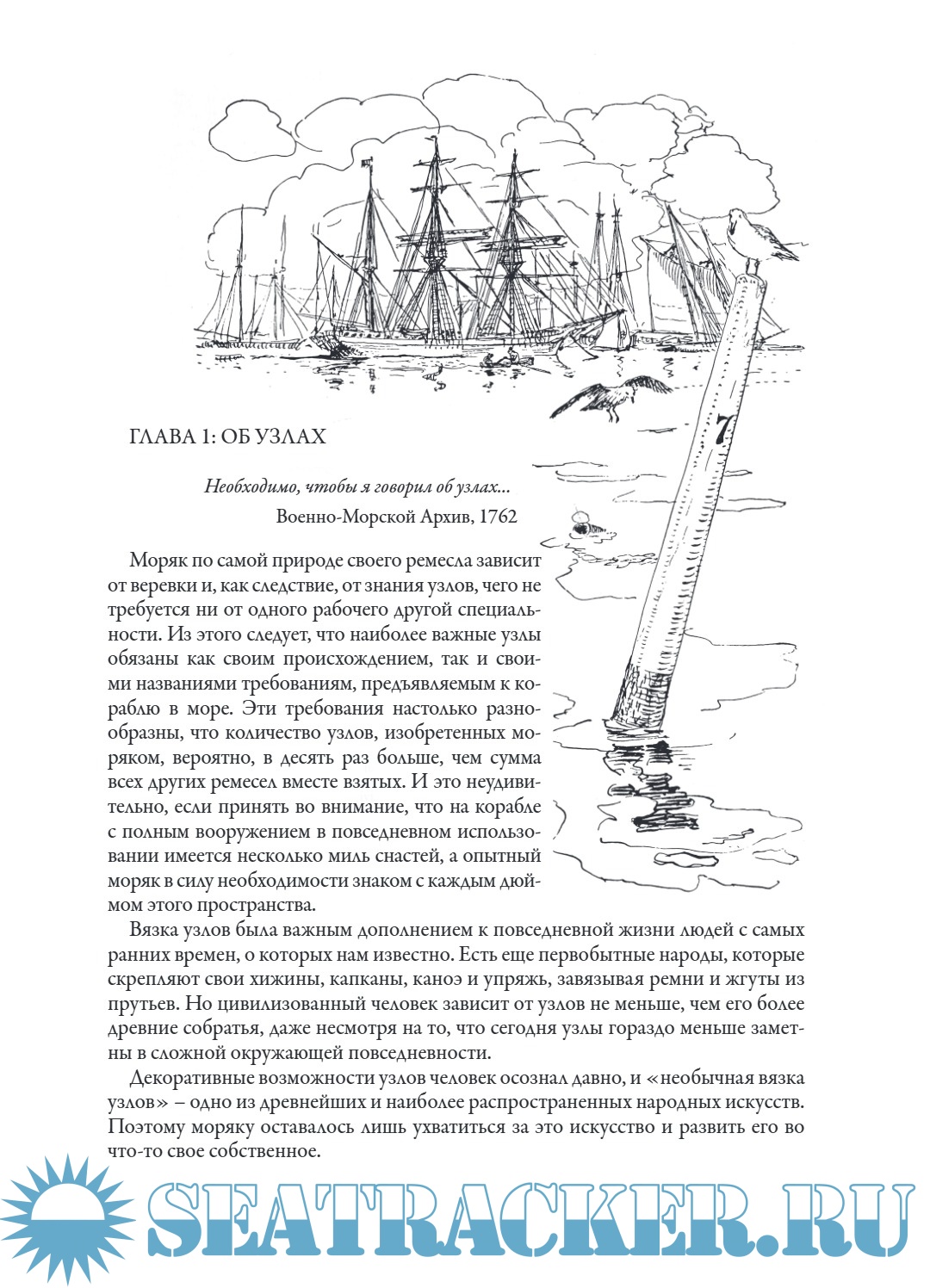Моряк по самой природе своего ремесла зависит от веревки и, как следствие, от знания узлов, чего не требуется ни от одного рабочего другой специальности. Из этого следует, что наиболее важные узлы обязаны как своим происхождением, так и своими названиями требованиям, предъявляемым к кораблю в море. Эти требования настолько разнообразны, что количество узлов, изобретенных моряком, вероятно, в десять раз больше, чем сумма всех других ремесел вместе взятых. И это неудивительно, если принять во внимание, что на корабле с полным вооружением в повседневном использовании имеется несколько миль снастей, а опытный моряк в силу необходимости знаком с каждым дюймом этого пространства.