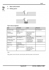PART A Shipbuilding and Remedial Quality Standards for New Construction References Standards 1. Scope 2. General requirements for new construction 3. Qualification of personnel and procedures 4. Materials 5. Gas Cutting 6. Fabrication and fairness 7. Alignment 8. Welding Joint Details 9. Remedial PART B Shipbuilding and Repair Quality Standard for Existing Ships References Standards 1. Scope 2. General requirements for repairs and repairers 3. Qualification of personnel 4. Materials 5. General requirements to welding 6. Repair quality standard