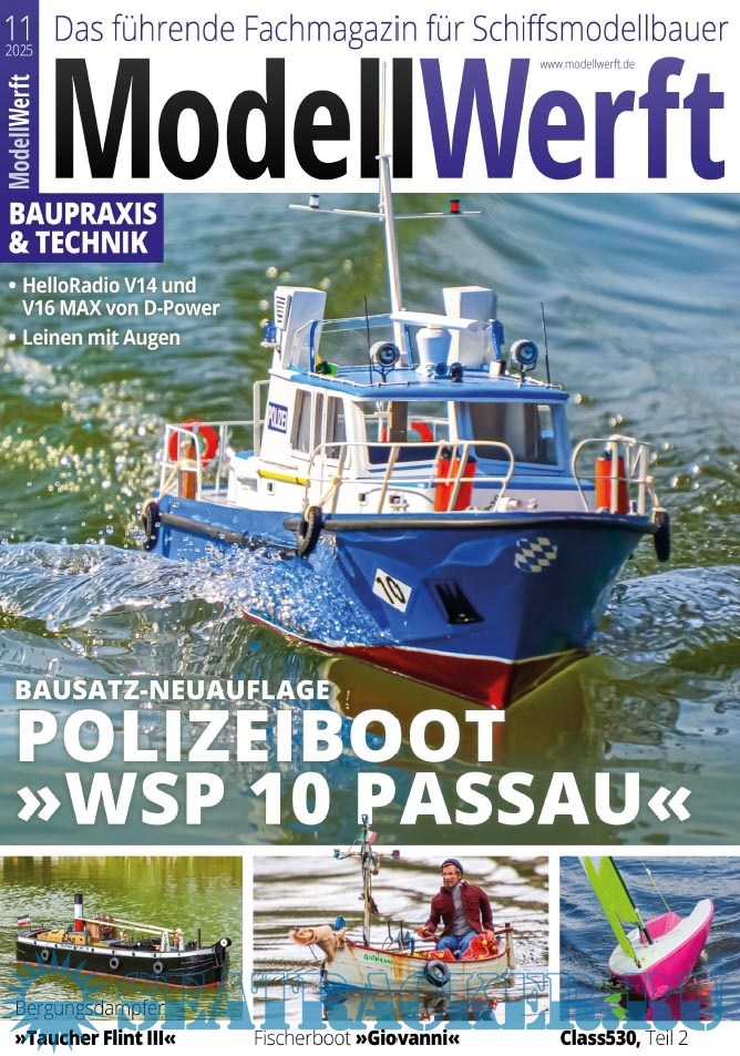 Year: 2025 Language: German Author: Eric Schafenrort (Redaktor) Genre: Periodical publication Edition: 2025-11 Format: PDF Quality: eBook Pages count: 84 Description: Das führende Fachmagazin für Schiffsmodellbauer. Egal ob Stand- oder Fahrmodell, ob kleines Segelboot oder gigantisches Kreuzfahrtschiff. Die Modellwerft informiert über Neuheiten, hilft mit Bautipps und fasziniert mit besonderen Reportagen.