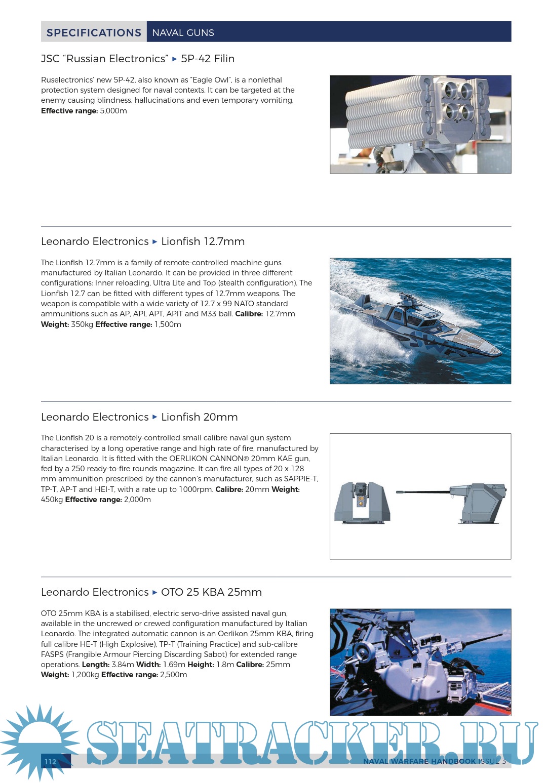 Specifications for naval guns, laser effectors and close-in weapon systems that are under development, in production or being substantially modernised.