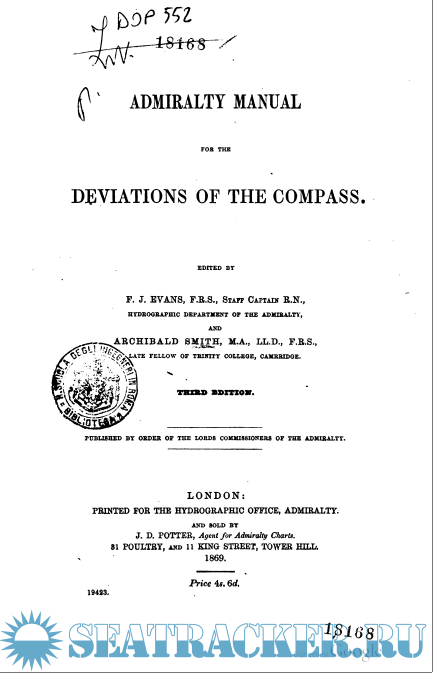 Year: 1869 Language: English Author: British Admiralty Publisher: HMSO Format: PDF Quality: Scanned pages Pages count: 237 Description: Admiralty Manual for the Deviations of the Compass (1869)