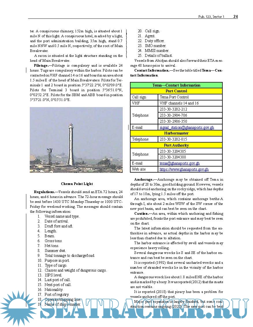 Year: 2025 Language: English Author: National Geospatial Intelligence Agency Genre: Documentation Publisher: NGIA Edition: 18th Format: PDF Quality: eBook Pages count: 259 Description: Pub. 123, Sailing Directions (Enroute) Southwest Coast of Africa, Eighteenth Edition, 2025, is issued for use in conjunction with Pub. 160, Sailing Directions (Planning Guide) South Atlantic Ocean and Indian Ocean. The companion volume is Pub. 124. Digital Nautical Chart 1 provides electronic chart coverage for the area covered by this publication. Electronic Nautical Chart Regions K, Q, and R1 provide electronic chart coverage for the area covered by this publication. This publication has been corrected to 30 August 2025.