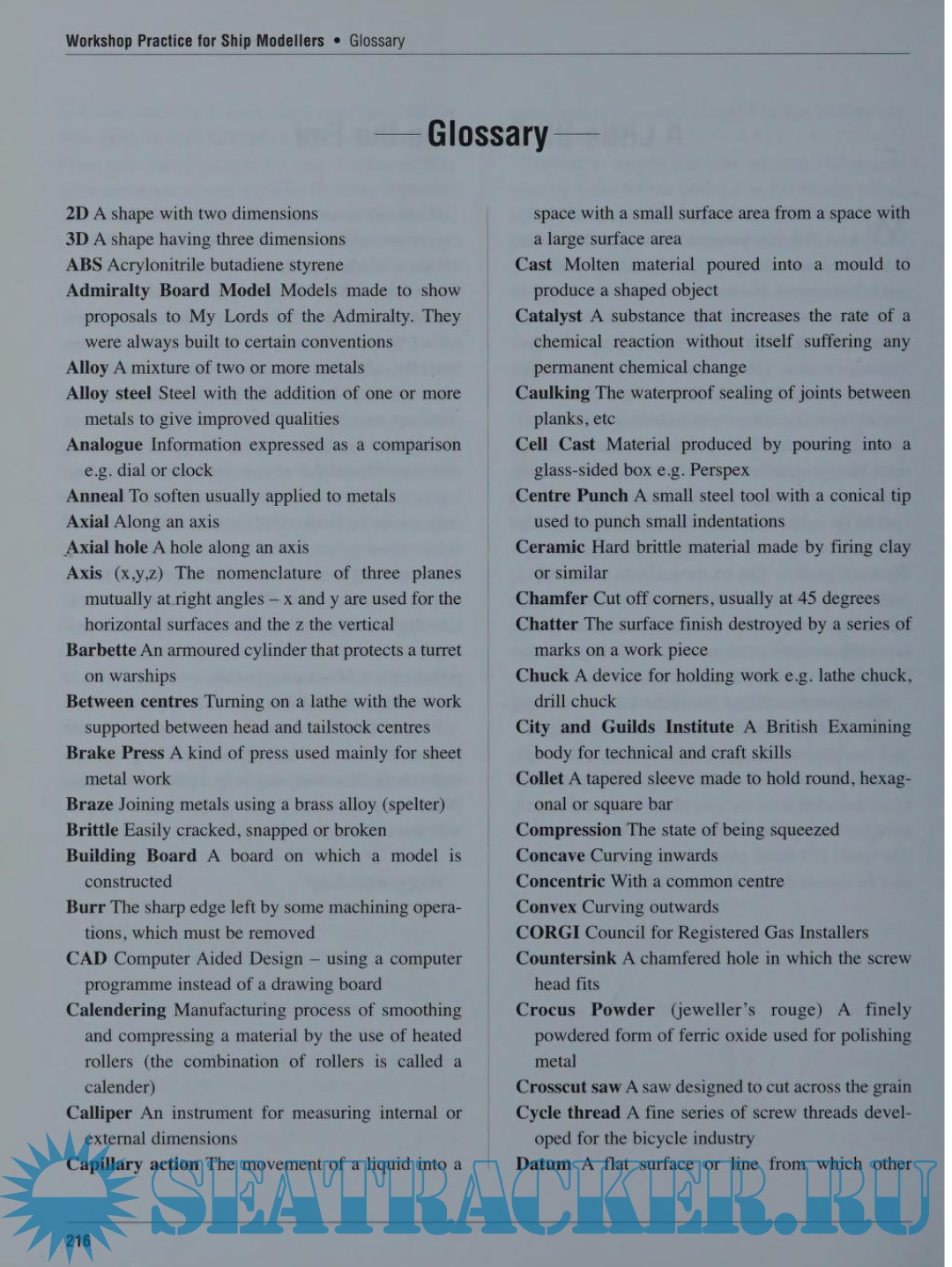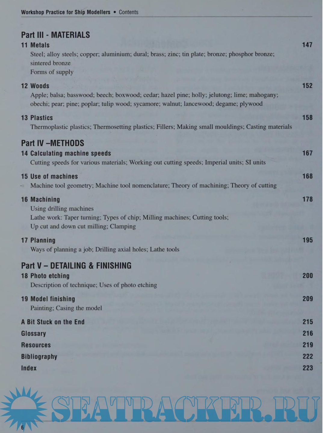 Year: 2003 Language: English Author: King B. Genre: Manual Publisher: Conway Maritime Press Format: PDF Quality: Scanned pages Pages count: 236 Description: Broad in scope, yet meticulous in its coverage, King has drawn on years of his experience as a ship modeller to provide a thoroughly comprehensive guide to workshop practice. It includes sections on shop design, tools, equipment, properties and usage of materials, machining methods, and finishing.