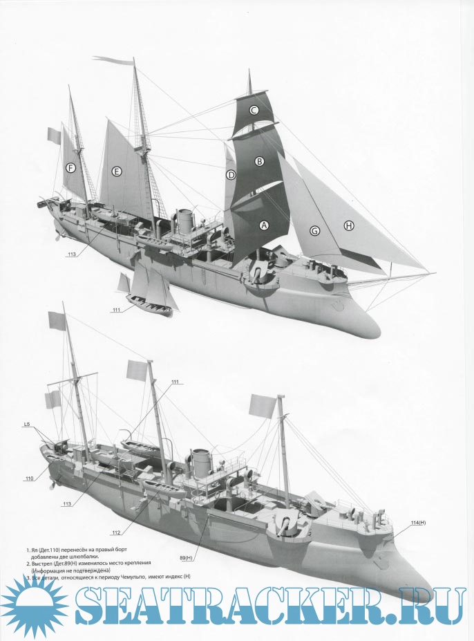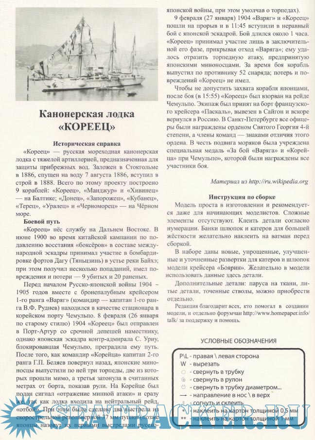 18 листов цветных выкроек и описаний для изготовления бумажной модели канонерской лодки ''Кореец'' в масштабе 1:200Скриншоты