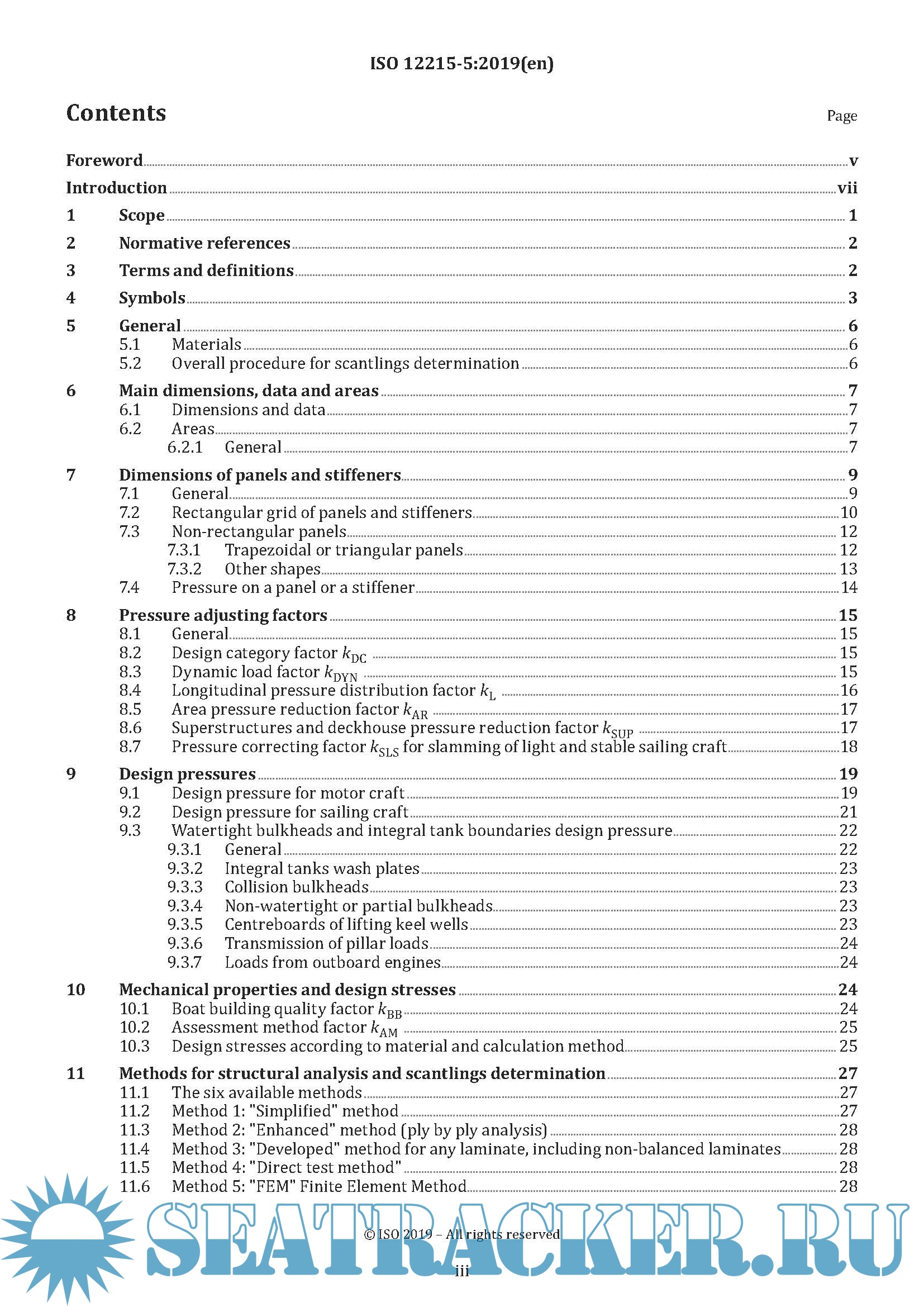 Year: 2024 Language: English Author: ISO Genre: Нормативный документ Publisher: ISO Edition: 2nd edition / Corrected version Format: PDF Quality: eBook Number of pages: 136 Description: The committee responsible for this document is ISO/TC 188, Small craft. This second edition cancels and replaces the first edition (ISO 12215-5:2008, including its amendment ISO 12215-5:2008/Amd 1:2014), which has been technically revised. One of the main reasons to achieve this revision, after a decade implementing the first edition, was to allow other scantlings calculation methods than those given in the 2008 edition, noting the huge development of finite element analysis methods and software, and the trend already applied in ISO 12215-9 (keels and appendages) and ISO 12215-7 (multihulls). Therefore, in this new edition, like in many other scantlings standards, the design pressure loads, and the design stresses are given in the main body of the standard and, where needed, the scantlings calculation methods are detailed in Annexes. The main changes compared to the previous edition are as follows: — clarification of the scope and of many definitions, dimensions, and assessment; — definition of a theoretical hull/deck limit height ZSDT in Table 3; — renaming of nGC into kDYN in Table 7; — lowering of the values of kL in the aft part of the craft in Table 8; — deletion of kAR min, to better consider large panels, mainly sandwiches, in Table 9; — improvement of the values of kSUP in Table 10; — modification of design pressures for motor and sailing craft in Tables 12 & 13; — modification of design stresses introducing kBB and kAM factors in Tables 15 to 17; — incorporation of requirements for work boats in Table 2, Clause 12 and Annex J; — possibility to use a wider range of assessment methods detailed in Table 18; — move of the previous assessment method (now called "simplified") in Annex A; Additional info: This document defines the dimensions, design local pressures, mechanical properties and design stresses for the scantlings determination of monohull small craft with a hull length (LH) or a load line length (see NOTE 1) of up to 24 m. It considers all parts of the craft that are assumed to be watertight or weathertight when assessing stability, freeboard and buoyancy in accordance with ISO 12217.