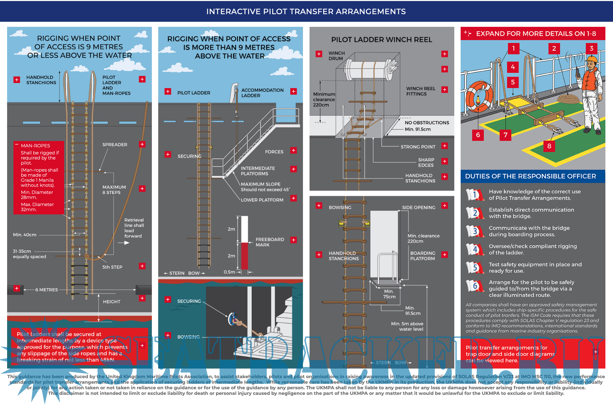 Year: 2025 Language: English Author: Kevin Vallance, John Slater Genre: Poster Publisher: UK Maritime Pilots’ Association (UKMPA) Edition: 1st Format: HTML Quality: eBook Pages count: 1 Description: To support industry’s transition, the UK Maritime Pilots’ Association (UKMPA) has developed an interactive poster illustrating compliant arrangements under the new regulation. This practical tool is intended to Help Crew Familiarise themselves with requirements and prepare ahead of the implementation dates. This poster, developed by Kevin Vallance, John Slater and Jon Smith of the UKMPA T&TC, in collaboration with James Musgrove, is designed to support the transition to the updated SOLAS V/23 regulations. These changes, agreed upon during the IMO MSC 110 meeting on June 25, outline new requirements for pilot transfer arrangements. The updated regulations will apply to: – New installations from January 1, 2028. – Existing installations on SOLAS ships during their first survey after January 1, 2029. – Non-SOLAS ships starting January 1, 2030.